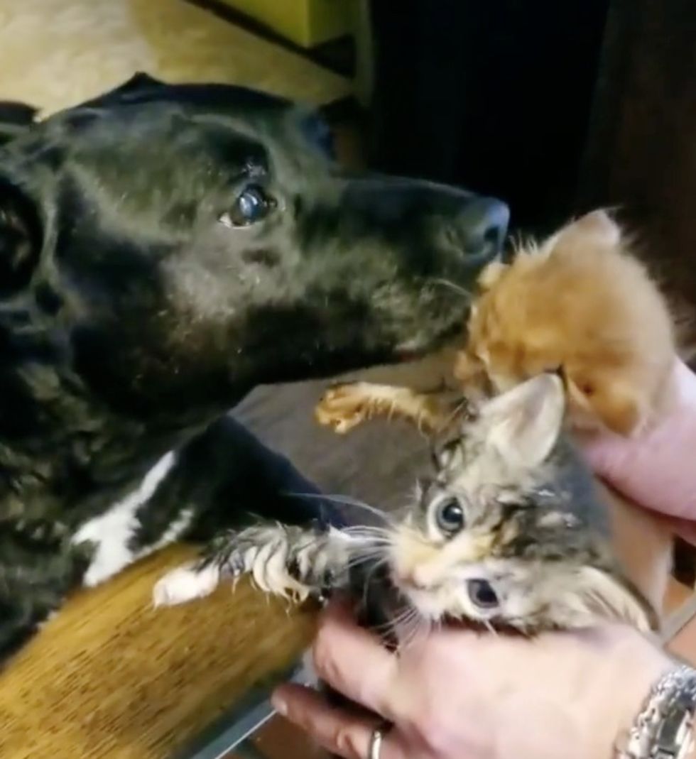 Their rescued dog Zuca also came to give the kittens some much-needed motherly love.