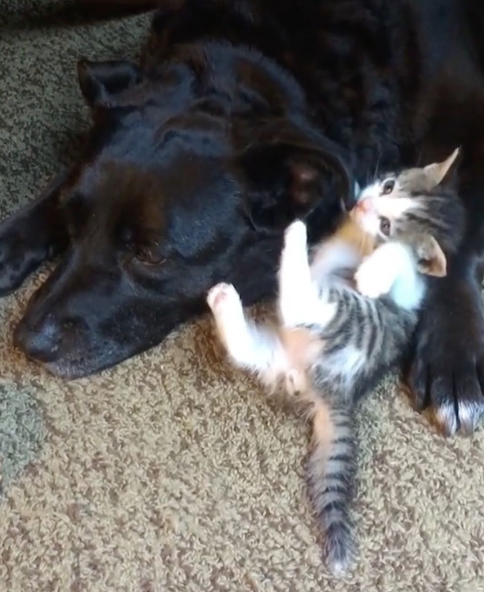 These tiny motherless kittens came to the shelter, in need of love. They met a gentle, nurturing dog at their foster home and she became their new mom.