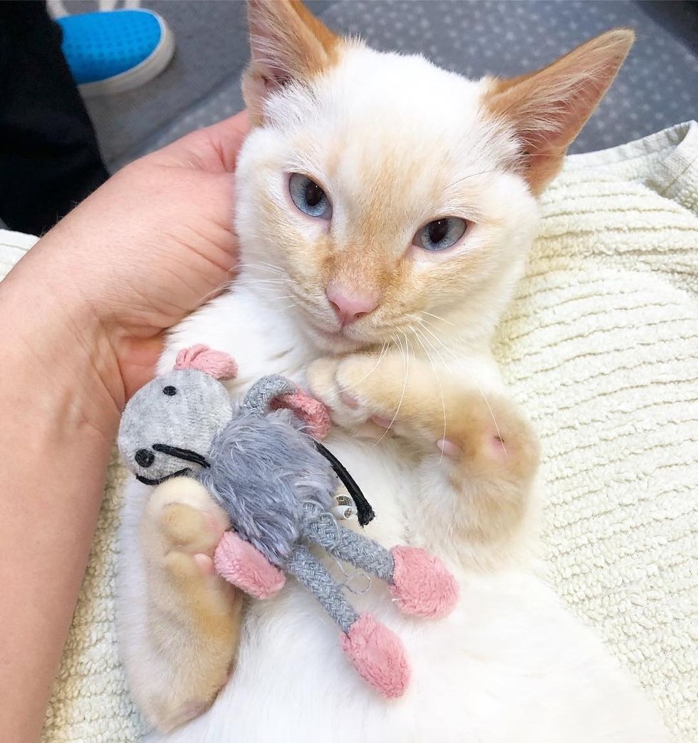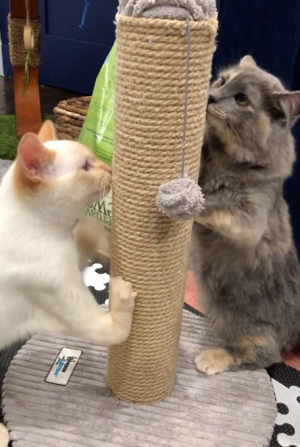 Now they play with all the toys they can find and enjoy pets and attention from their human companions. By the end of the day, they always snuggle and stay by each other's side.