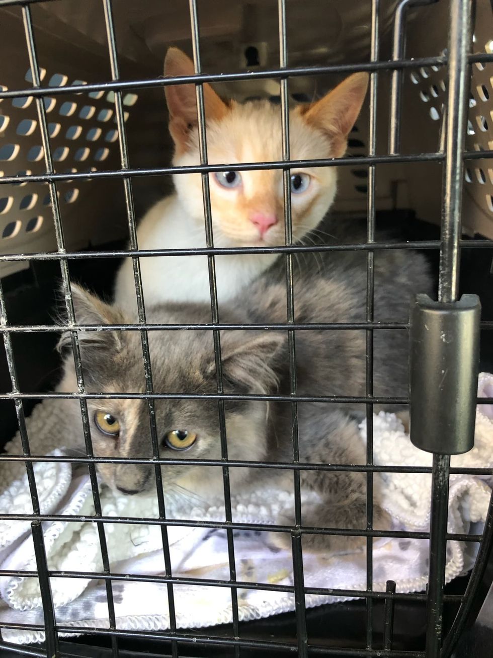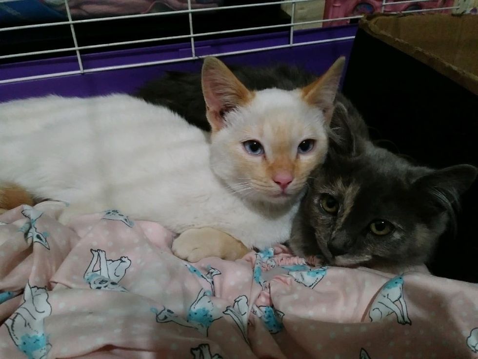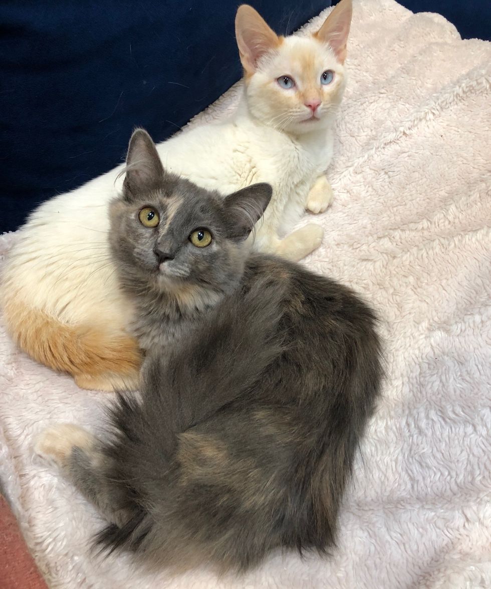 Mel Lamprey, a volunteer of the rescue, picked them up and brought them home. The feline siblings were scared and stuck together the whole time for security and comfort.
