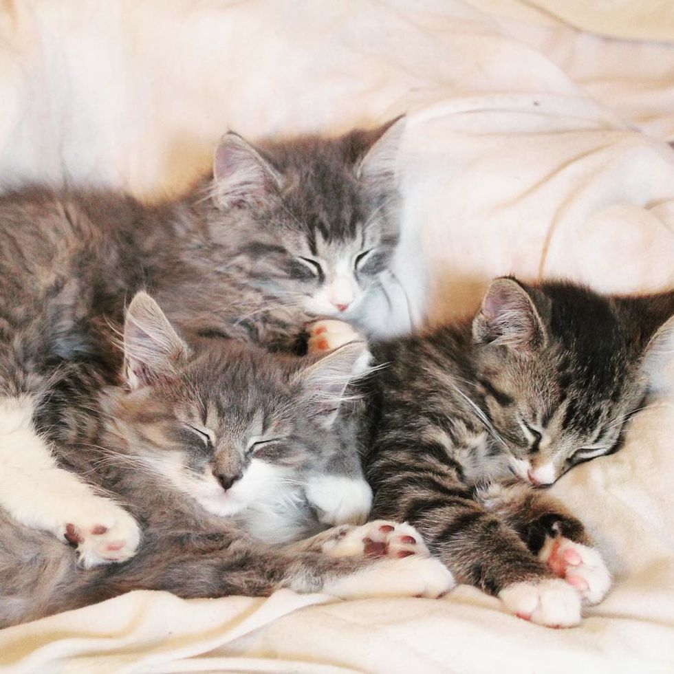 Since the trio got back together, they have been completely inseparable."They all sleep with me every night and are always cuddling. They clean each other and are always playing," Brianna said.