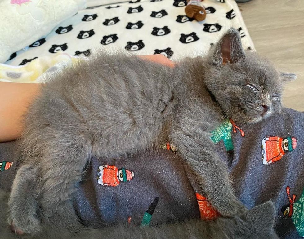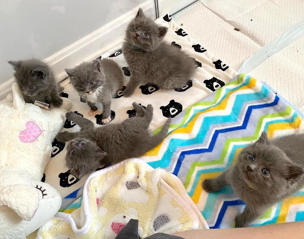 Five kittens squeezed on their fosterer's lap and snuggled up a storm after she brought them back from the brink.