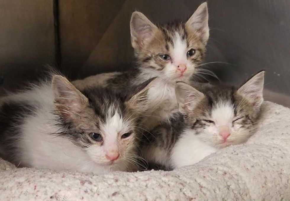 "They were covered in fleas, dehydrated, malnourished, and had upper respiratory infections which caused the goopy eyes and runny noses," The Cleveland/Bolivar County Animal Shelter told Love Meow.