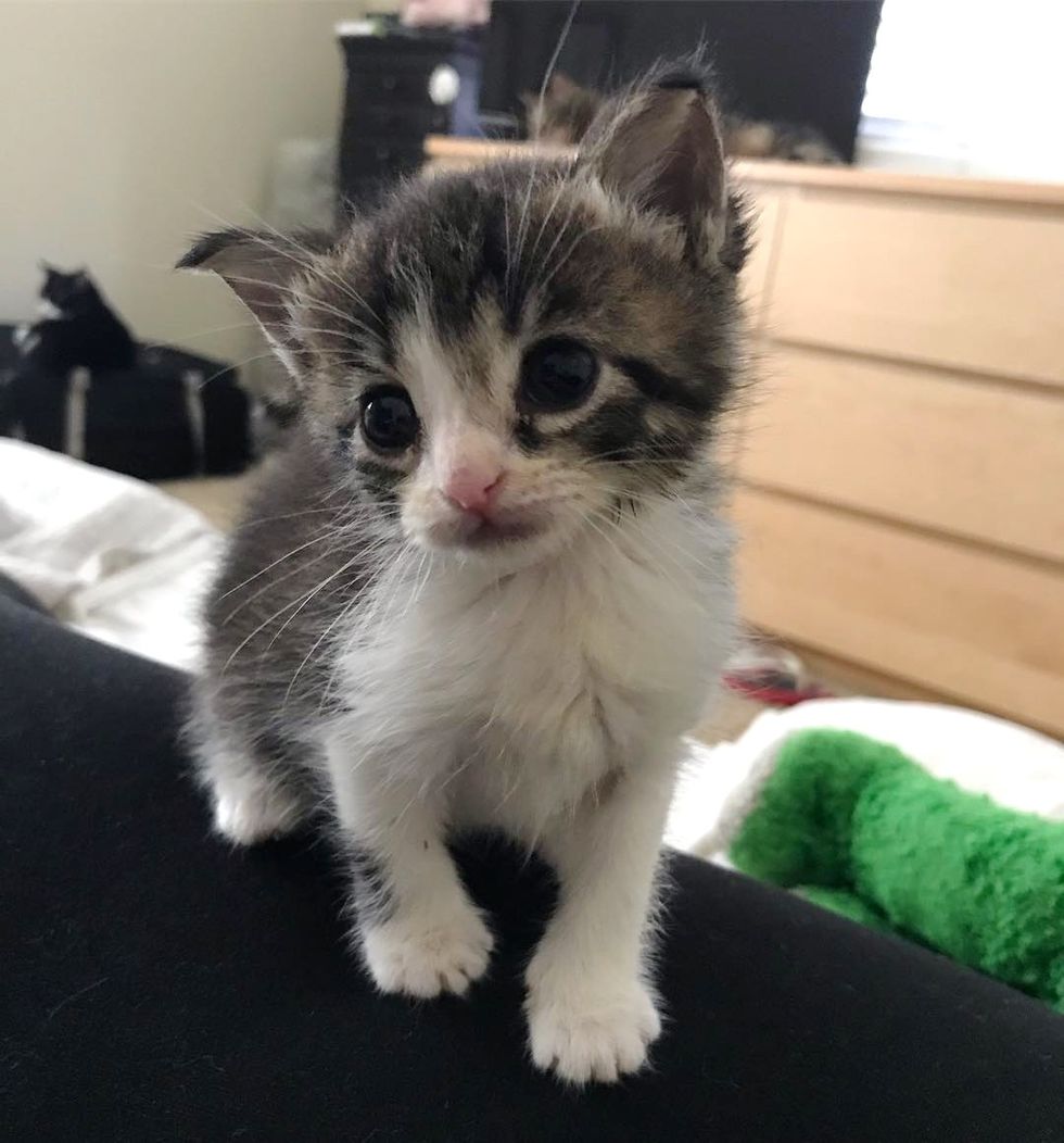 After a night of care, the kittens perked up the next morning with contented, full bellies.
