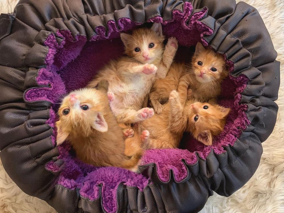 The four orange kittens (Sunkist, Tangerine, Mandarin, and Clementine) were each other's biggest cheerleaders.