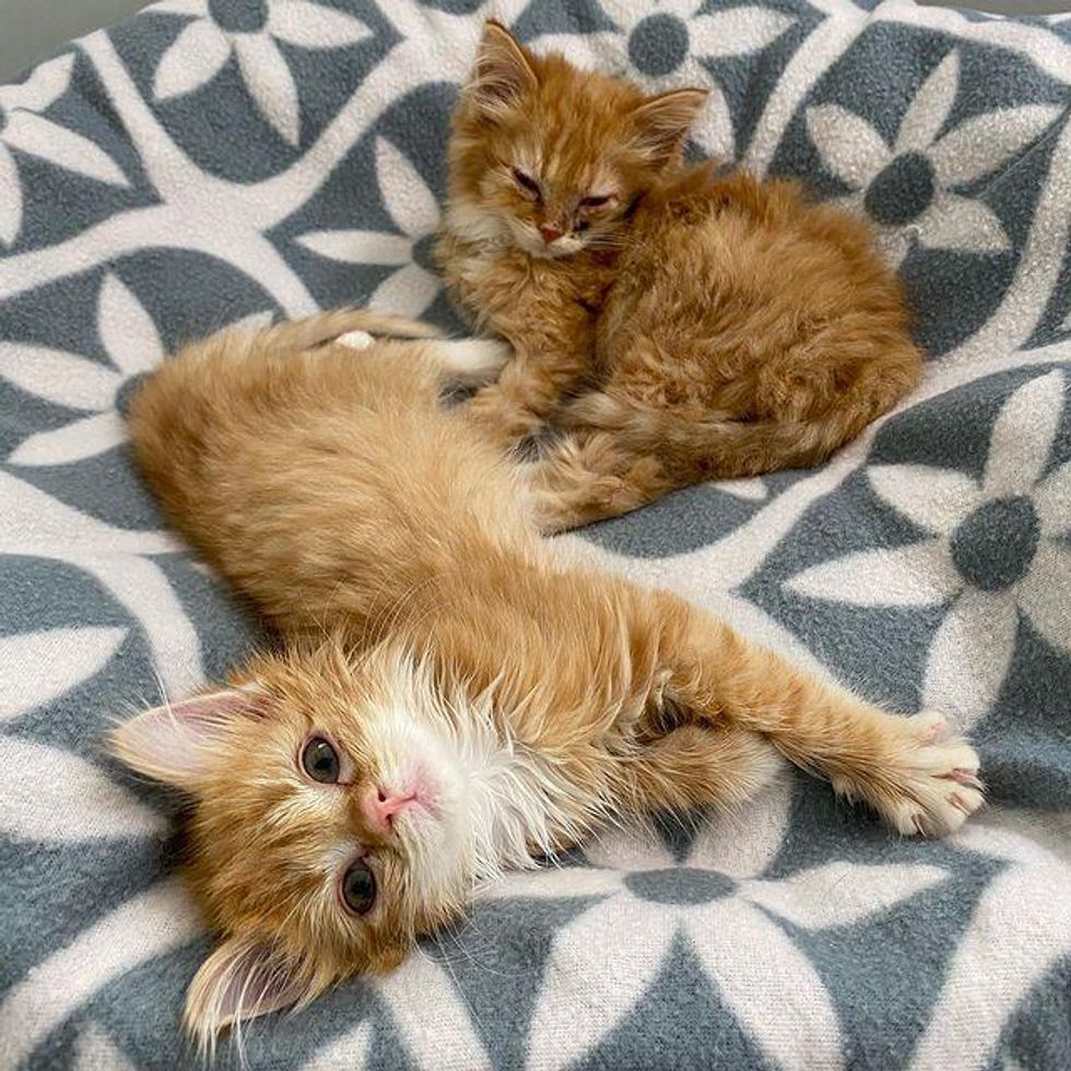 Twin kittens are so thrilled to have a comfy place to stay after being rescued from a tough situation.