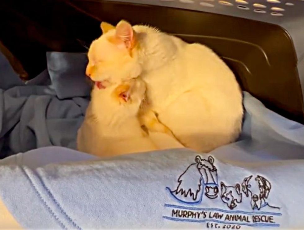 The two kittens were transported to a local veterinary clinic in separate cages to be evaluated. Sarah Kelly, the founder of Murphy's Law Animal Rescue, was contacted for assistance, and went to pick them up.
