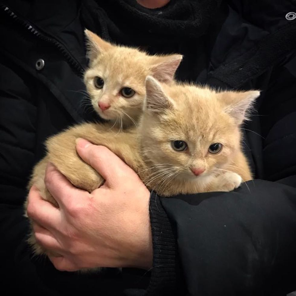 Earlier this month, two little stray kittens wandered into an industrial area, where many stray animals frequent.