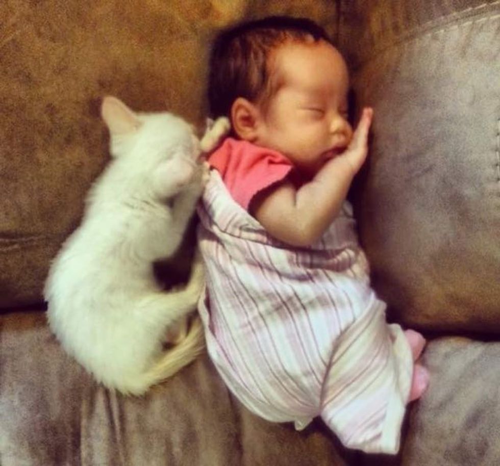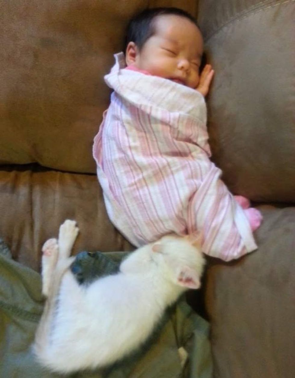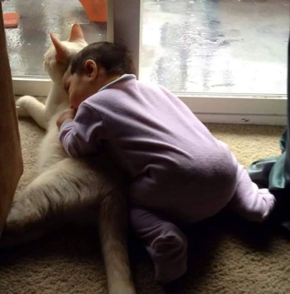 This is kitty and his human sister when both were babies :). They bonded right away and the parents knew at moment that these two buddies were going to be friends for life.