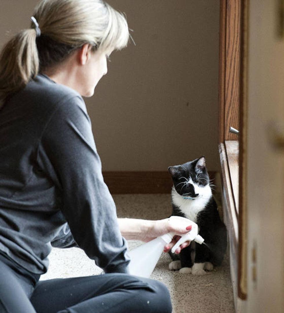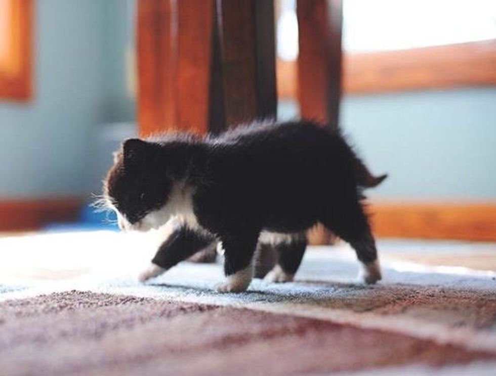 Being blind doesn't make this kitty disabled. He uses his other senses to help him 'see.'
