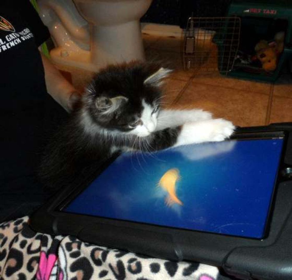 Anakin LOVES Friskies Cat Fishing game on the iPad. He doesn't care too much to catch the slow fish but really likes to go after the faster ones.