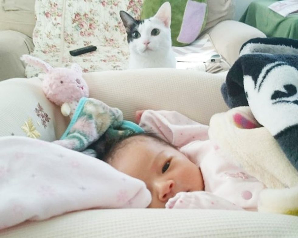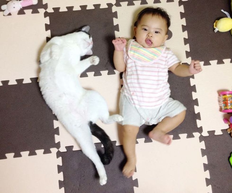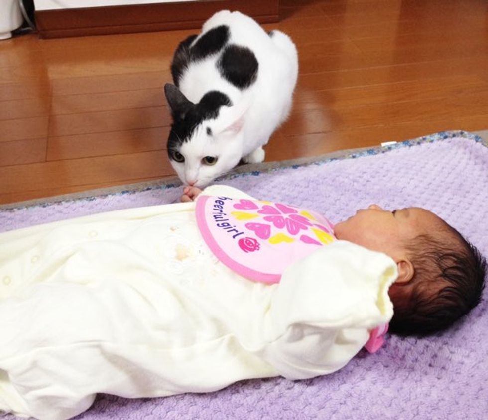 When Shi-chan the cat met her human sister for the first time, she was unsure about this strange looking 'kitty' but that quickly changed...
