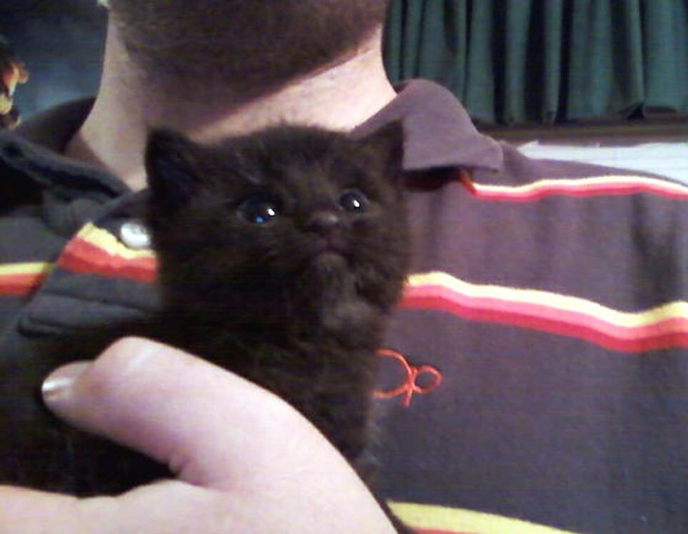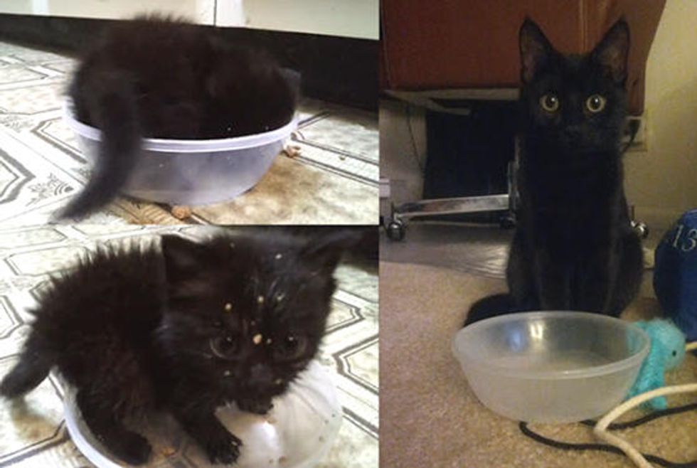 A black tiny kitten found a second chance at life around Halloween last year. No one was there to claim her until a kind man and his family who took her home, nursed her and turned her into a beautiful lady cat that she is today. She stole his human dad's heart and made him a cat convert for life.