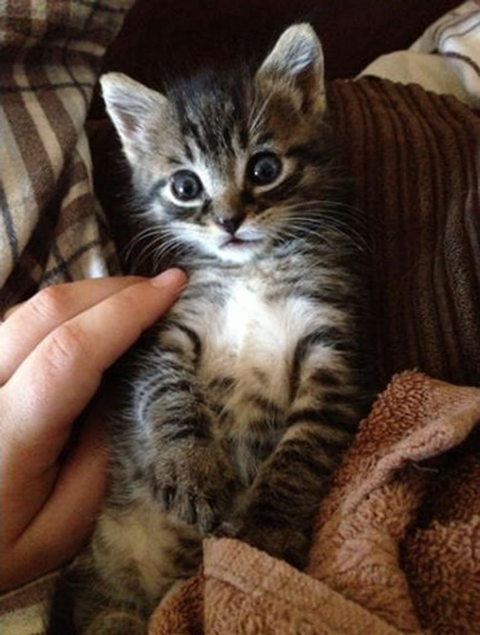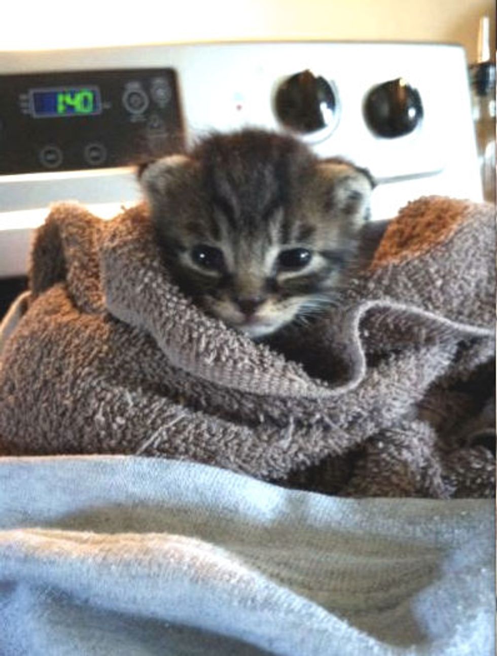 Meet Toby the kitty. His human mom went to the pound to pick up a dog for a rescue, but when she saw Toby the little orphan, she fell in love, and the rest is history.