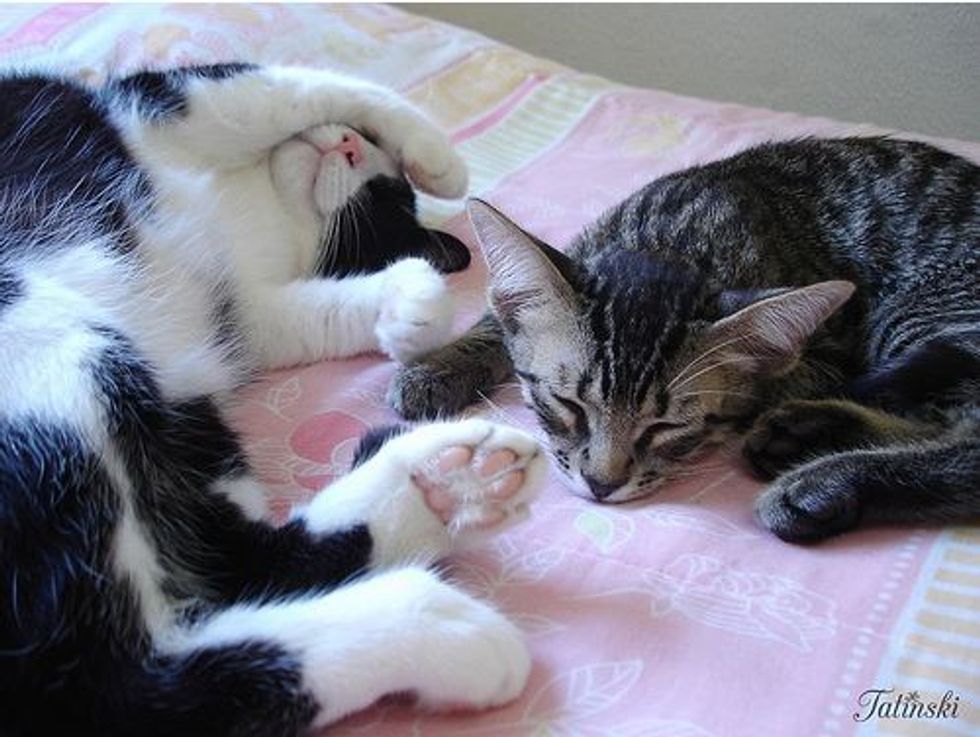 Hoping to find Kitty a companion to play with, Tatiane brought another kitty home. His name is Kal-El. Kitty and Kal-El immediately bonded and started sharing the bed and toys.