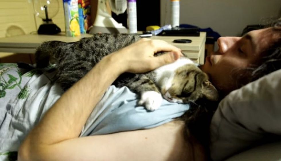 The man became the kitty's family she never had. She woke him up every morning by nuzzling in his neck and purring up a storm.