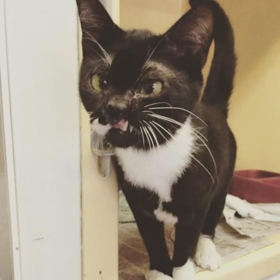 "He was attacked by an unknown animal as a homeless kitten and an elderly couple found him and saved his life," Kaitlin Zezeski told Love Meow.