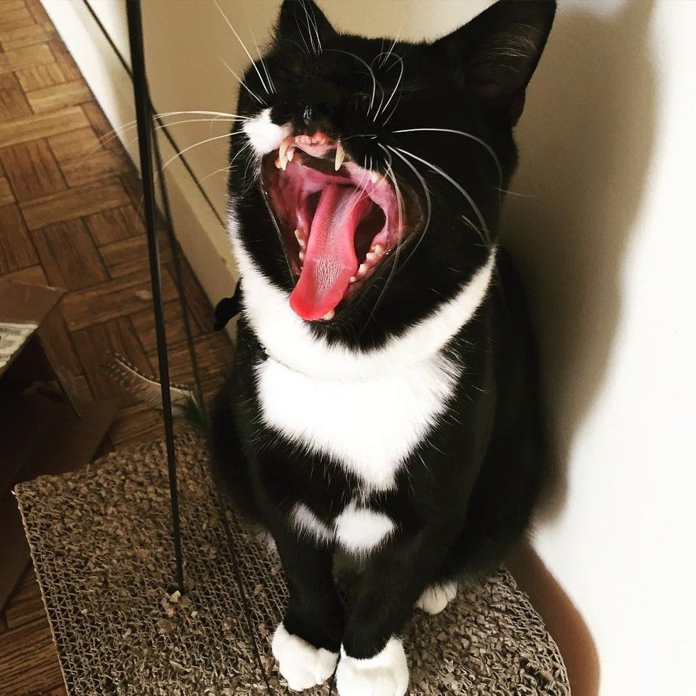 "He loves attention, luckily he has 4 fur siblings to keep him occupied. He's super chatty in the morning when he's hungry! He jumps on my night stand and starts knocking things over until I wake up to feed him. He's very curious, he needs to inspect everything!"