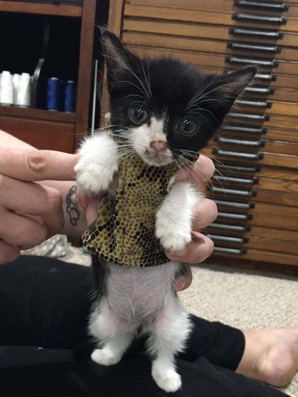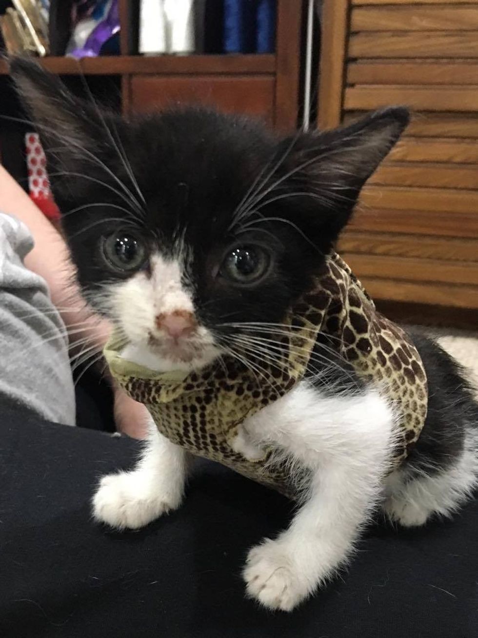 When the kitty just arrived at the shelter, they weren't sure if he would survive, but his foster mom, Lesley, saw the fight in him and knew they had to give him a chance.