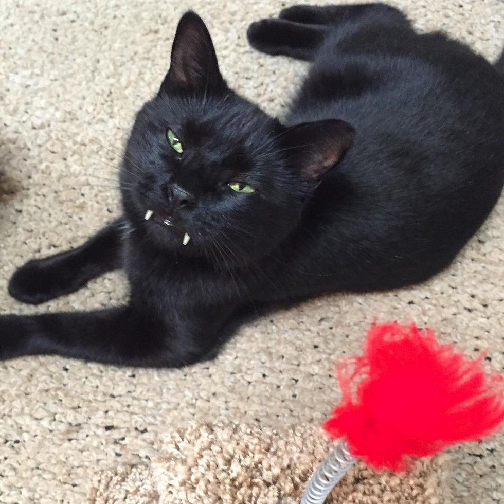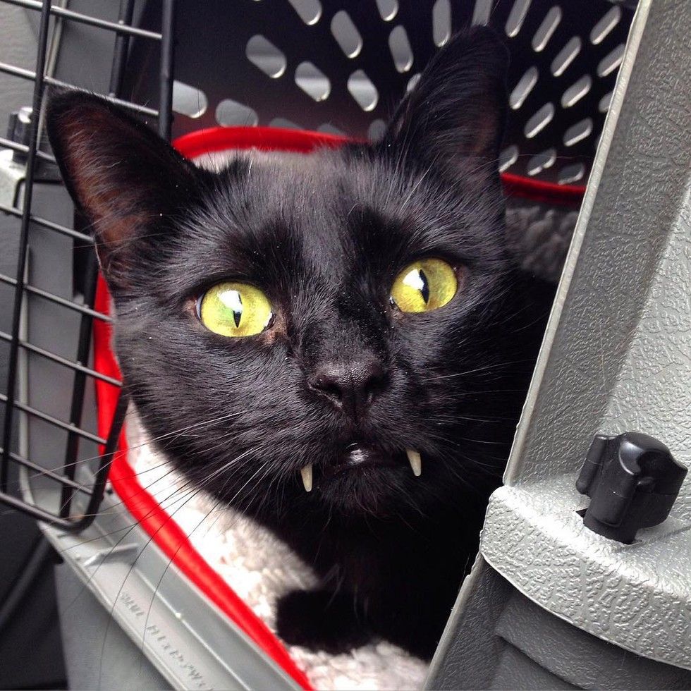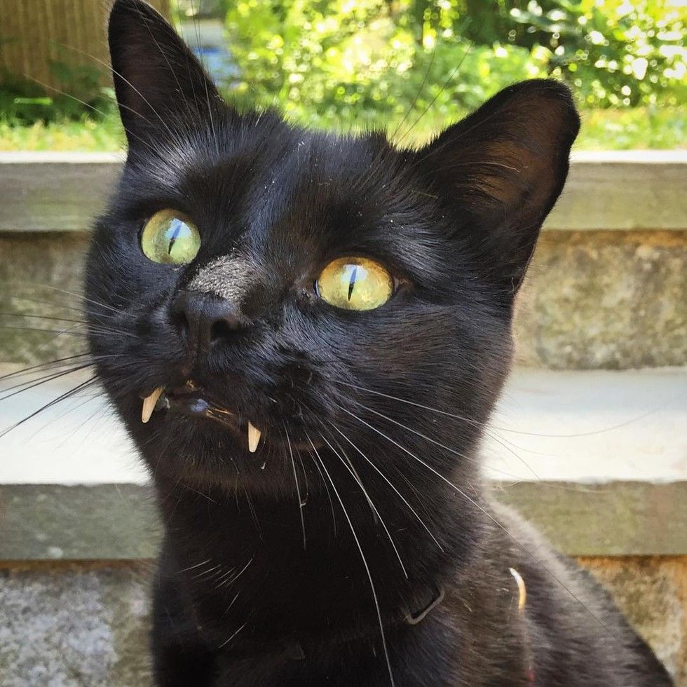 A kitty with vampurr fangs stole a woman's heart after she rescued him from the streets.