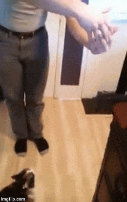 This adorable calico cat loves to jump through hoops to get her exercise in before breakfast. It's quite impressive how agile she leaps off the floor.