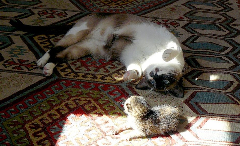 When Kitzy came, Andreea's kitty Pitsi was a bit confused. She couldn't make sense of the new tiny screaming creature that appeared out of the blue in her house.