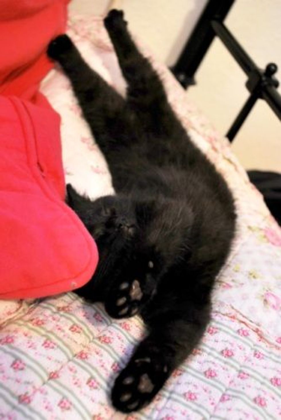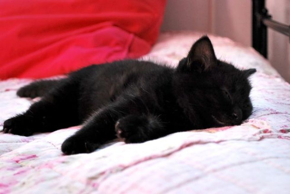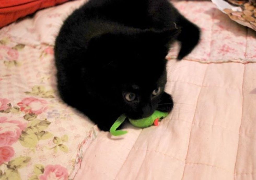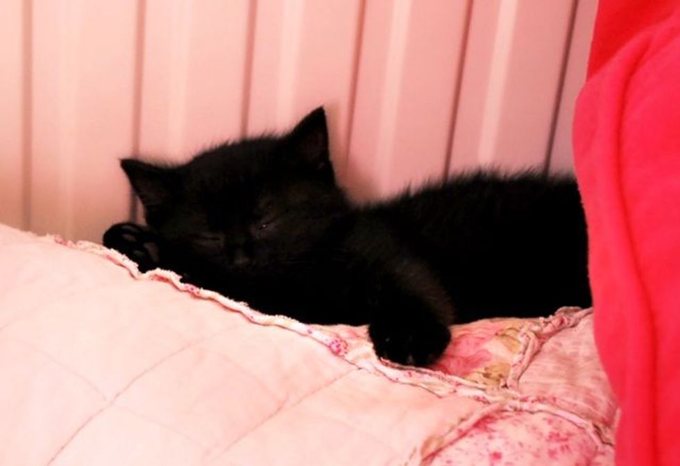 Kiwi is very active during the day. She plays with everything, climbs on my couch constantly and when she's tired and wants a nap, she is absolutely adorable. She always falls asleep on a pink pillow on the couch when I'm watching TV and when I'm going to bed she sleeps next to me on an empty pillow or falls asleep under my blanket.