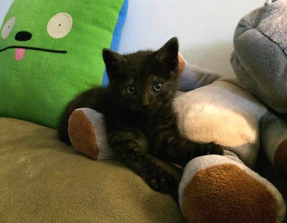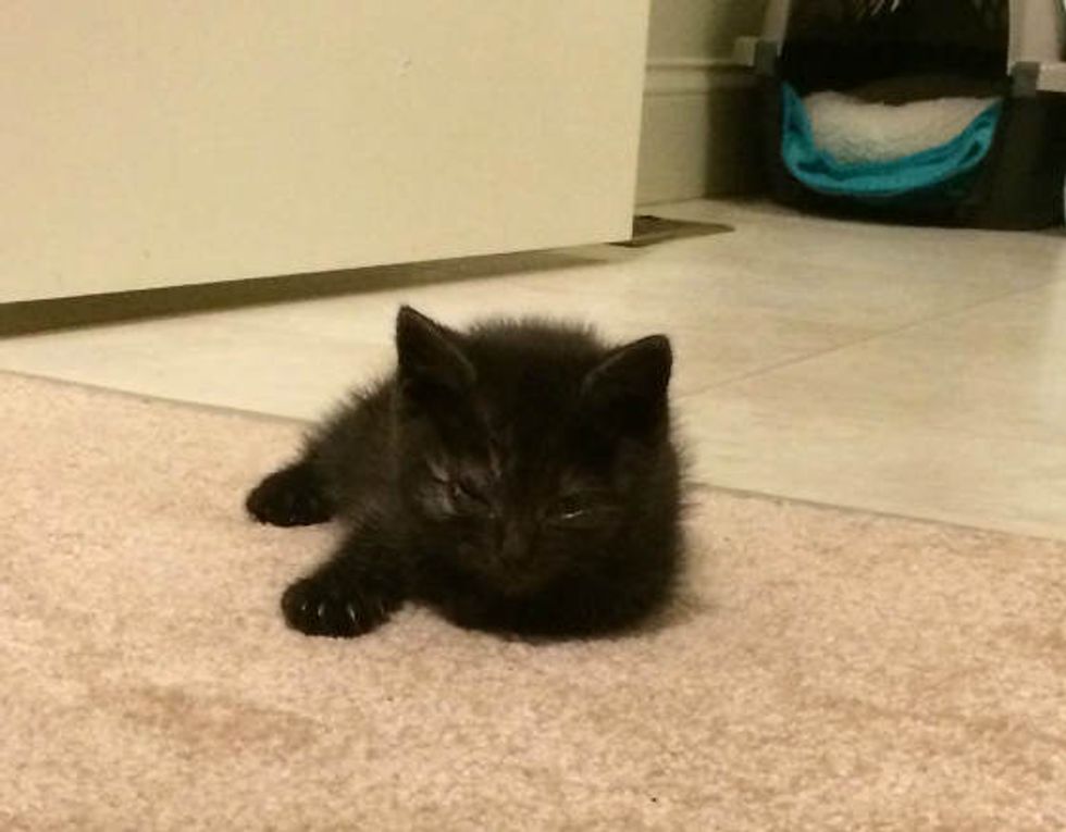 "My wife and I were planning on rescuing a cat from a shelter soon anyway… but I never thought we would find our kitten the way we did," he added. "We were driving to see Bill Cosby and saw one kitten in the road on the hill but thought it was trash or a rabbit or something, then about a quarter mile down the road there was Kratos running off the highway…. Fortunately he ran towards the trees and we were able to catch him. Someone else stopped to help out, but thought he was going to die so we decided to bring him to an e-vet and see if he would pull through. He more than did that, and quickly recovered from an eye laceration."