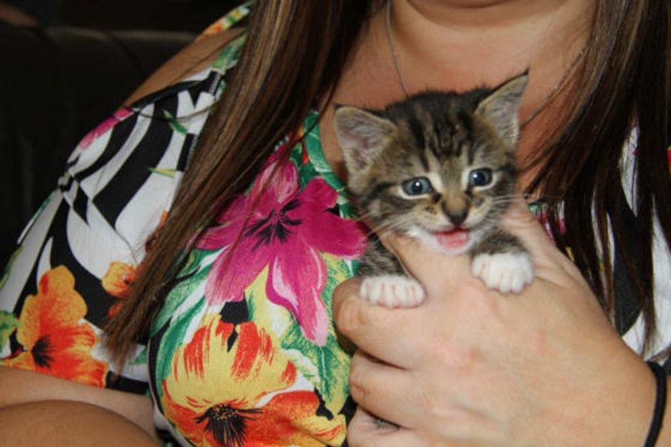 "He's about 6 weeks old and was orphaned soon after being born. We were offered him seemingly at random by his owner outside of a shopping centre, after being told that he'd be put down if no one took him. We didn't hesitate at all to welcome him into our family," said Jordan O. who rescued Mika (cuteoverload).