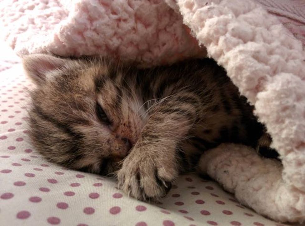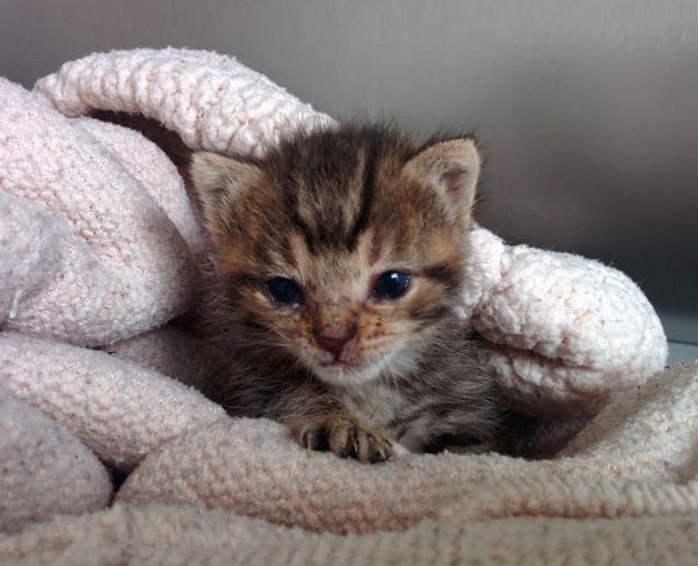 She was about 2 - 3 weeks old. The little tabby girl began to recover and thrive!