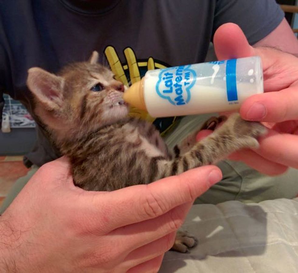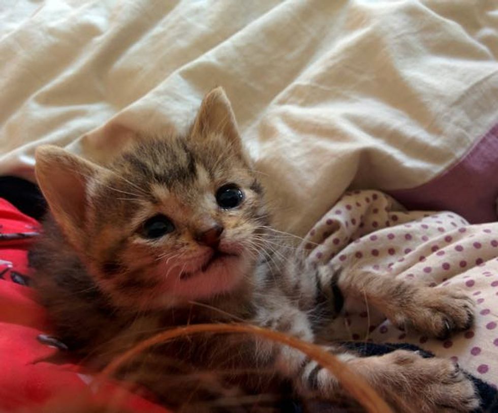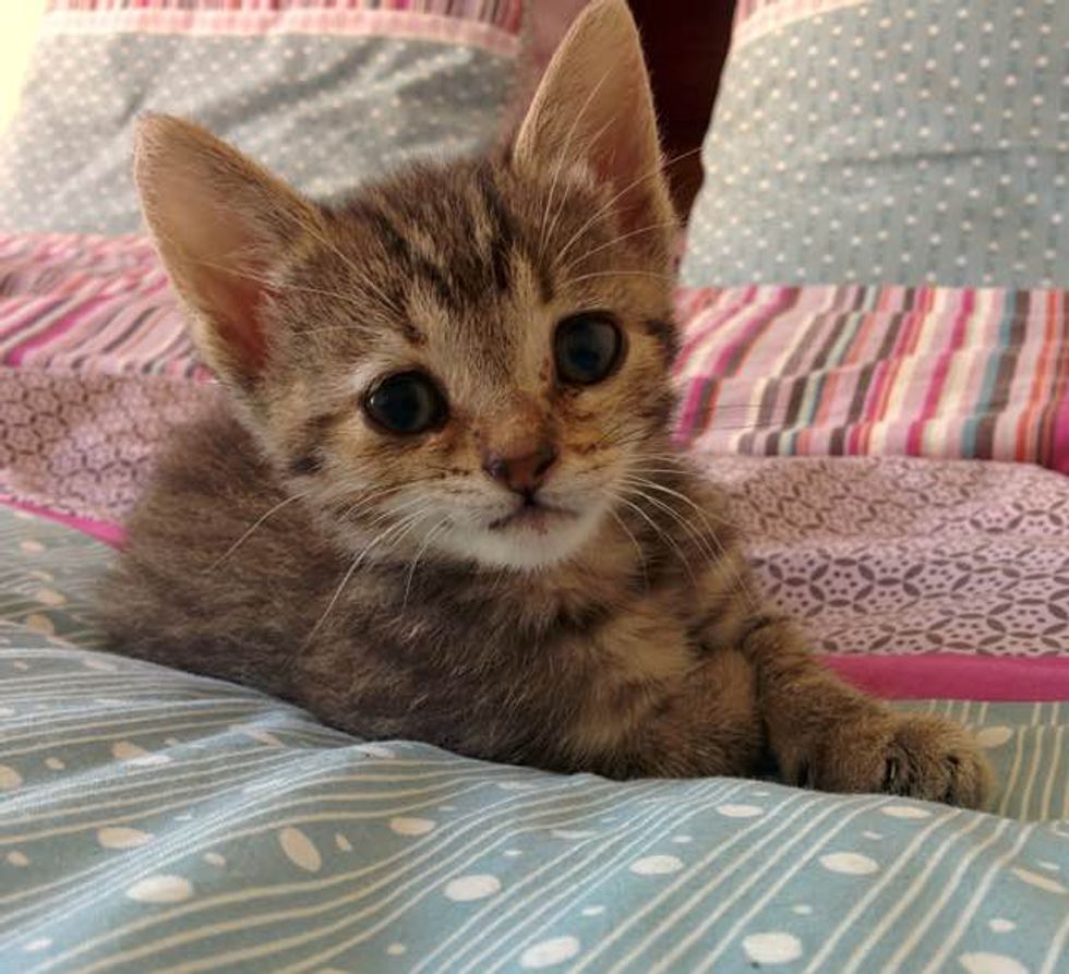 A couple found a kitten last April near their house. They waited to see if the mama cat would return for her baby, but she never did.