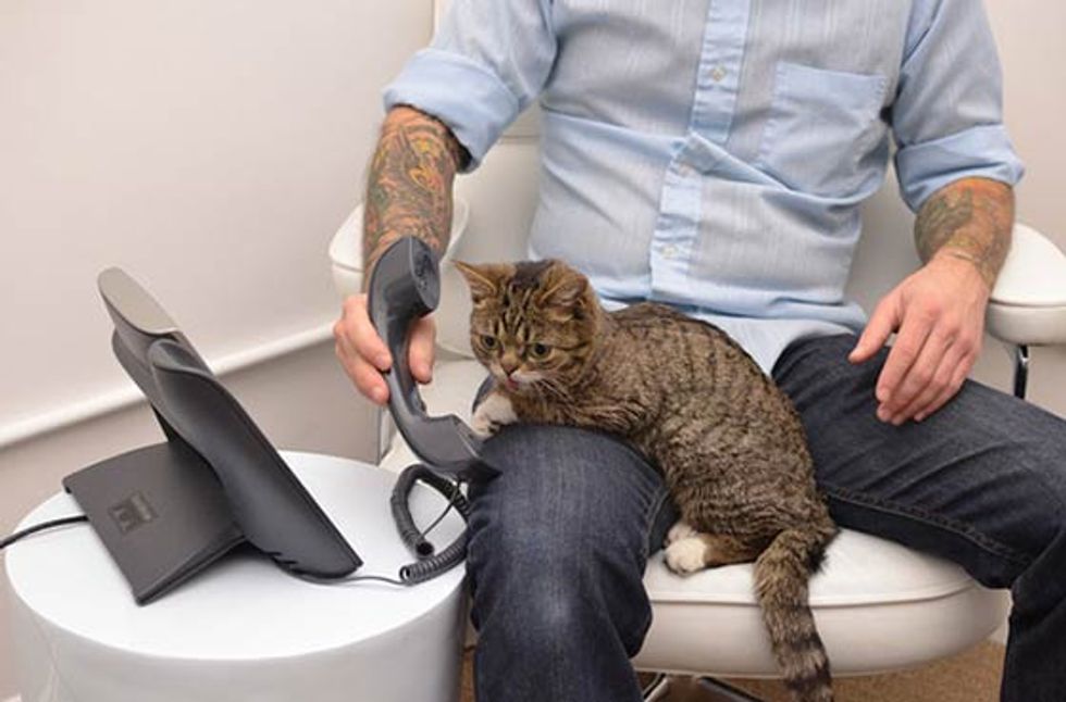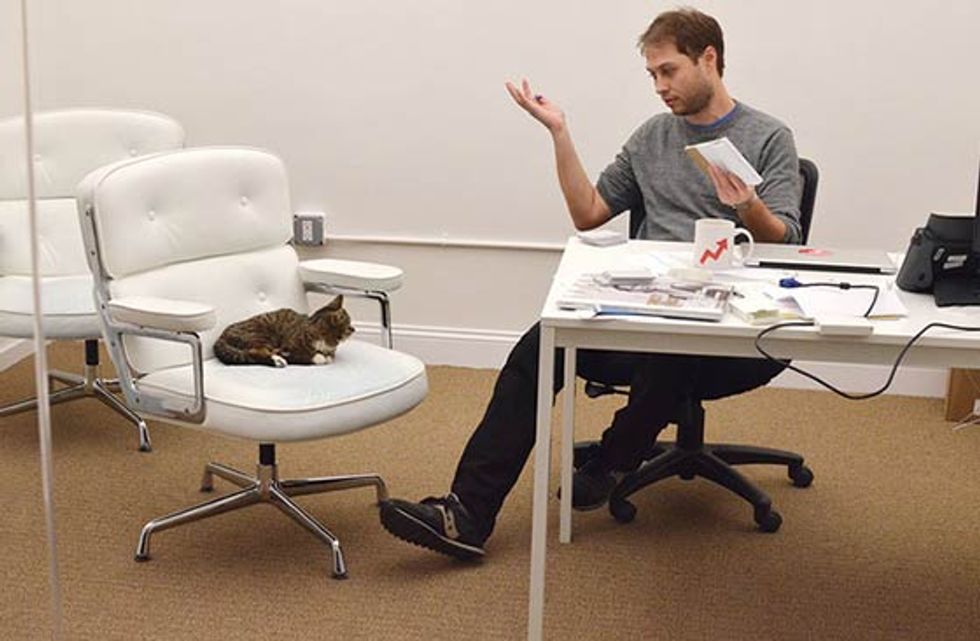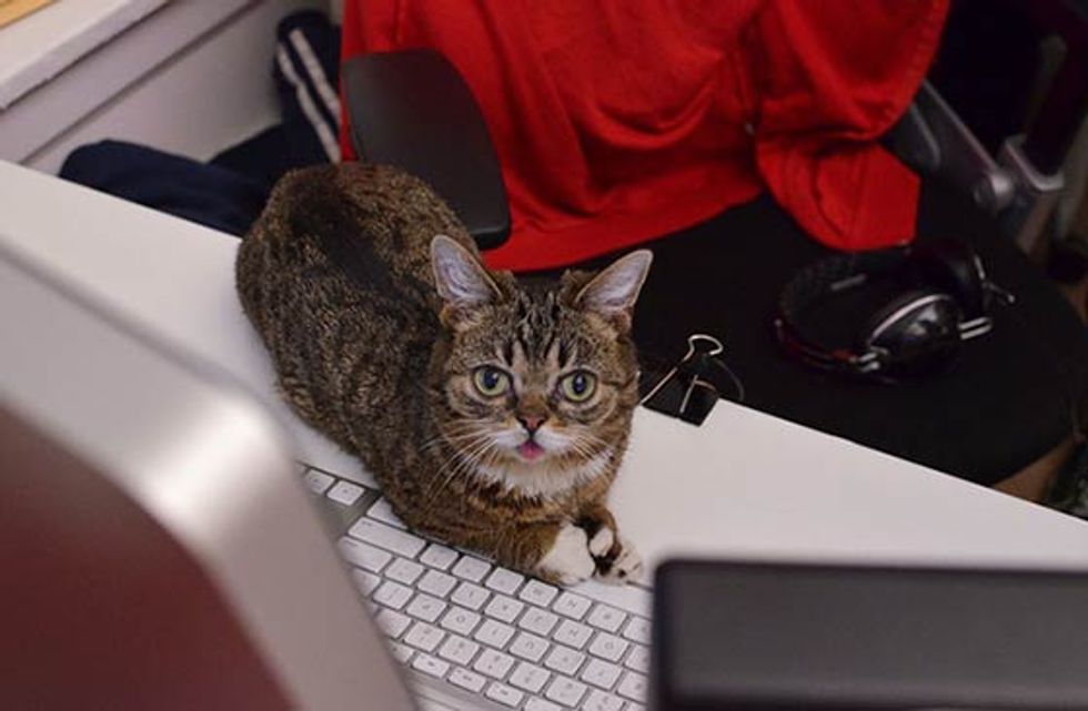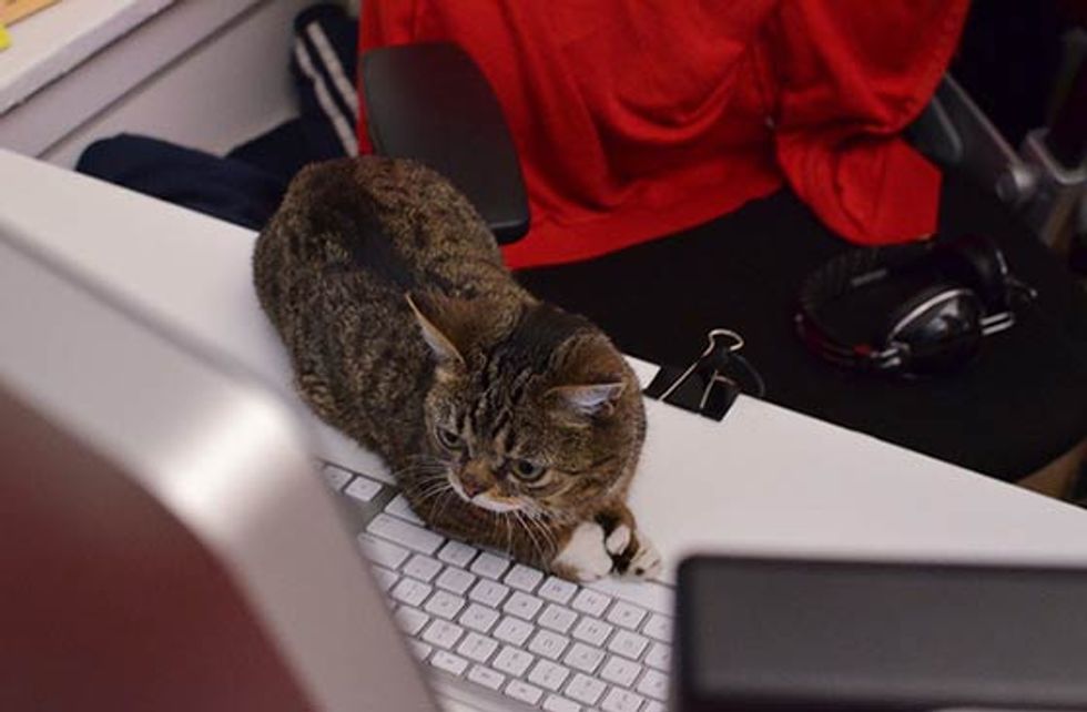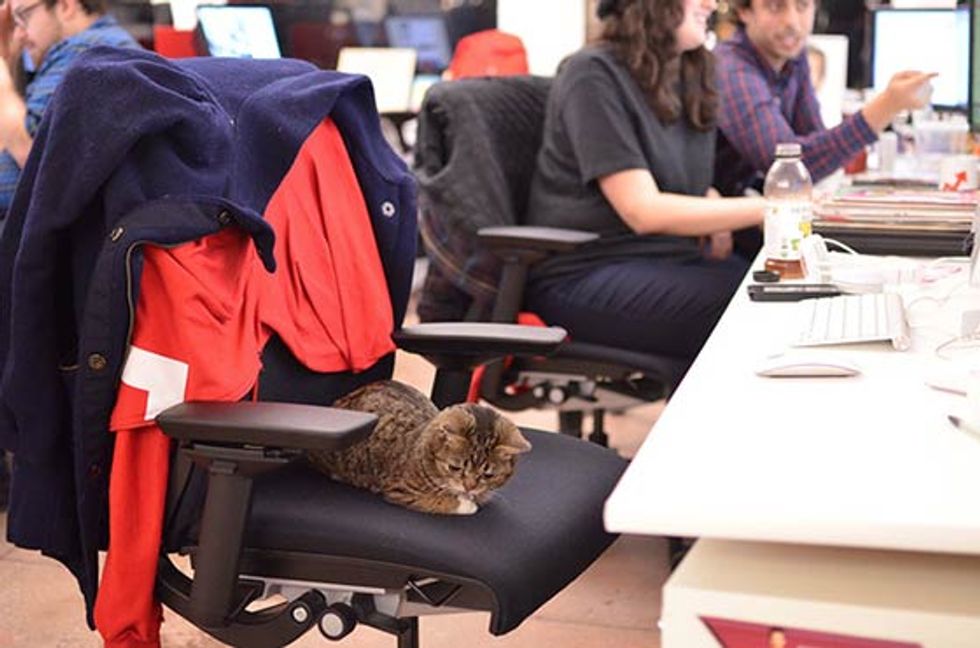 Bub the adorable toothless cat just spent a day at Buzzfeed's office. She got her own chair, desk and even led a meeting. [Bub's adoption story]