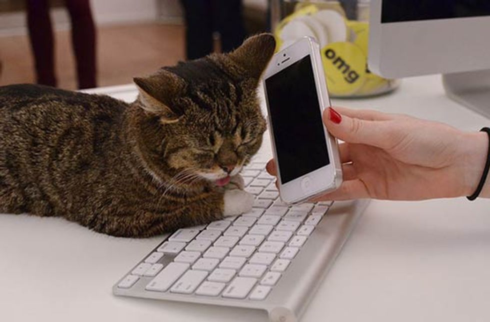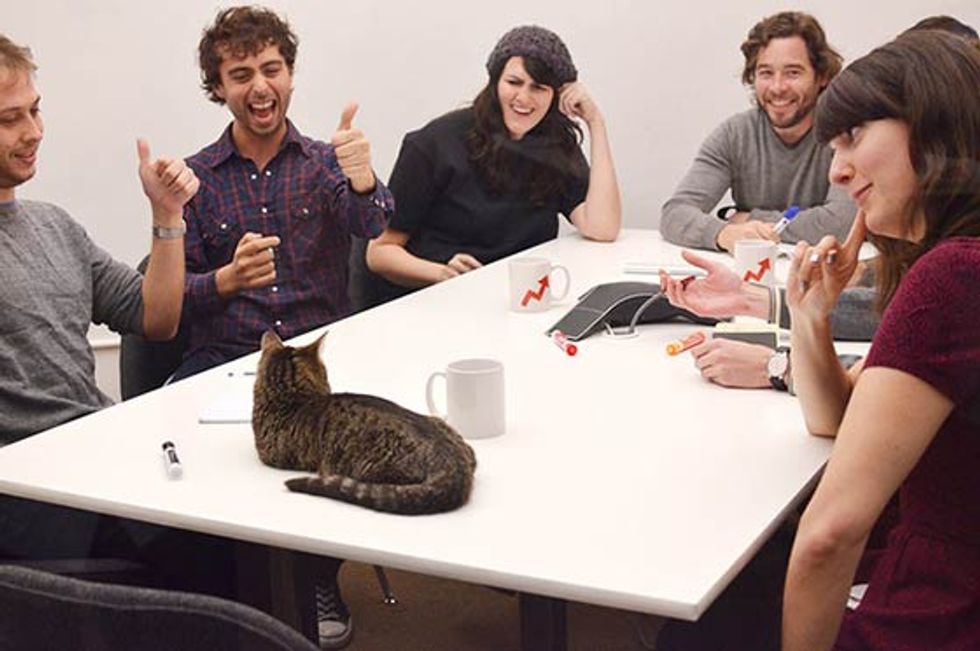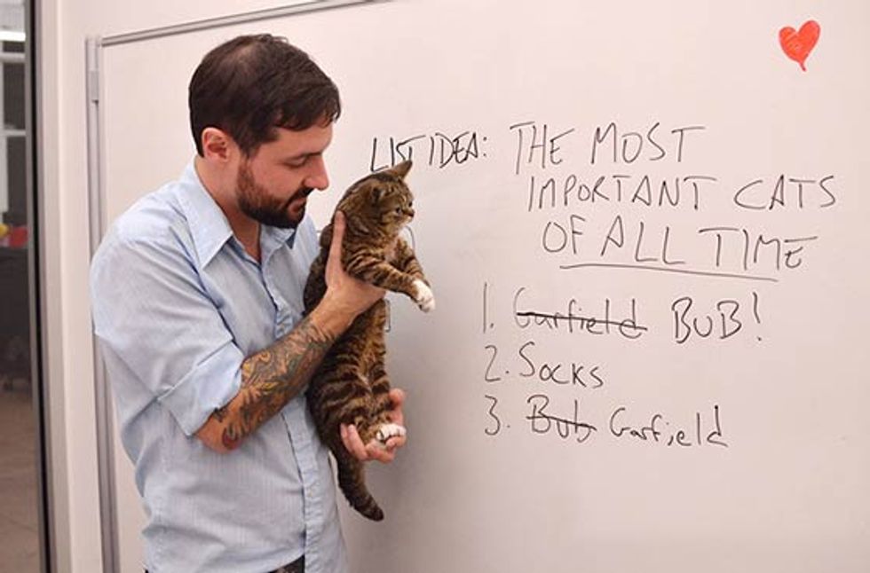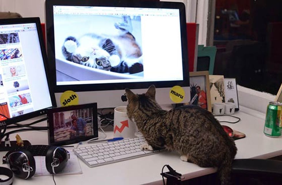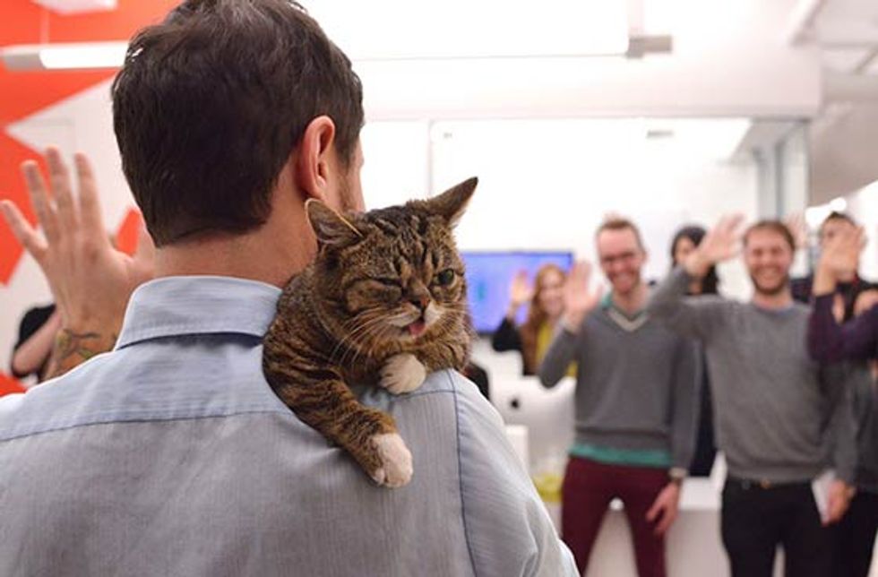 Bub the adorable toothless cat just spent a day at Buzzfeed's office. She got her own chair, desk and even led a meeting. [Bub's adoption story]