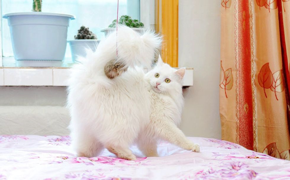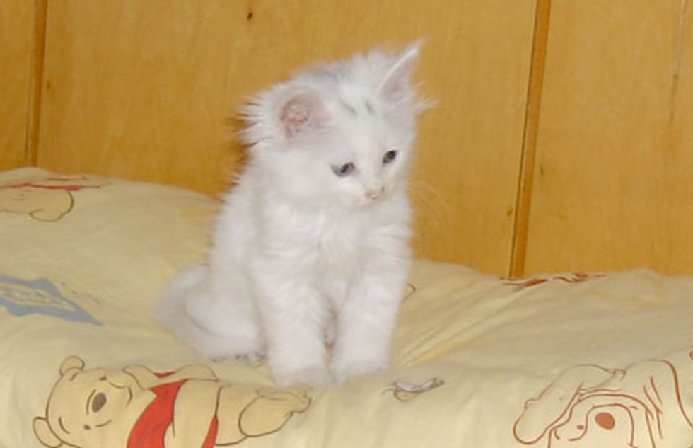 Ling has developed a strong bond with Toggie's grandfather. With such long coat, you would think she'd be an excellent groomer, but in fact, she lets Ming do most of the washing for her. However, every morning, she makes a trip to grandpa's bed and gives him a facial without fail. She will do it until grandpa is up to feed her. Ling loves to rest on grandpa's lap and meows for attention even though grandpa is in the middle of something.