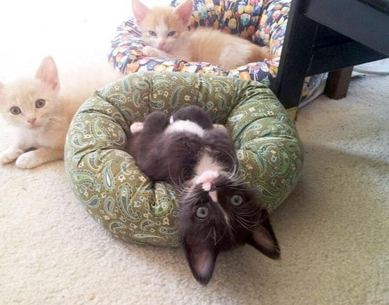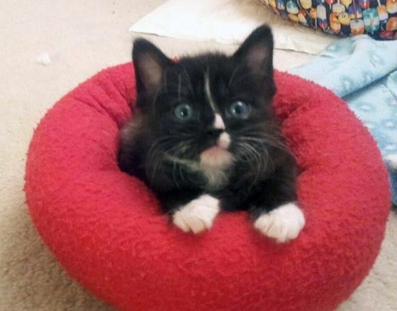 Tiny little one in his teeny kitten bed
