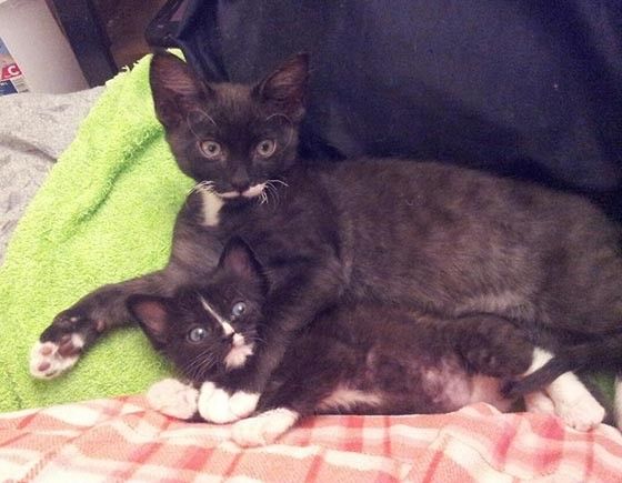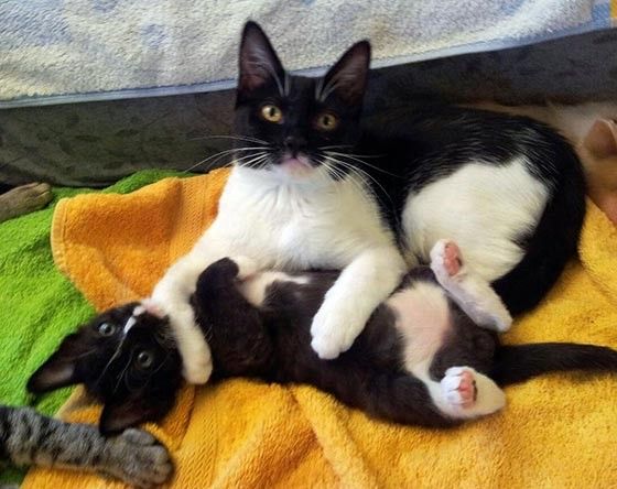 Rosie, another tuxedo, has Linus captive