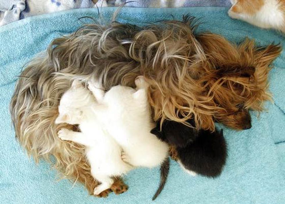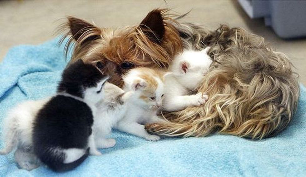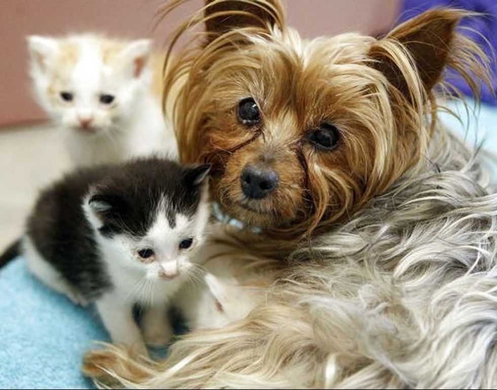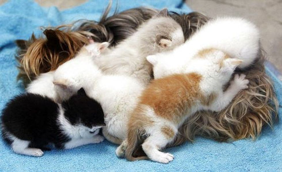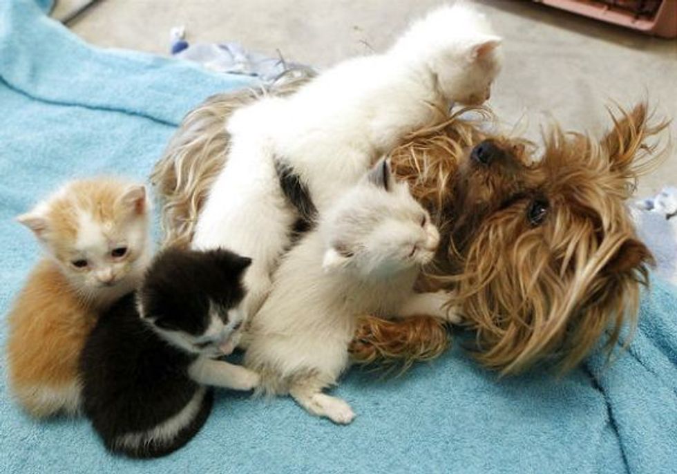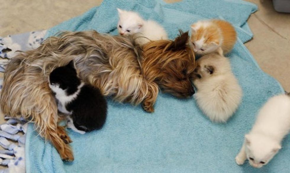 A litter of five orphan kittens taken in by the Humane Society of Utah have found a new mother who doesn't purr, but offers unconditional love. Her name is Bridget, a 10-year-old Yorkshire terrier.