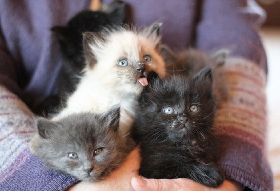 They scooped up the kittens and got them help. "Thankfully, my foster family that homeschools three kids agreed to take these squirming furballs. All were treated with antibiotics and deemed to otherwise be in good health. They were fed every four hours around the clock until transitioned to eating on their own," Jean added.