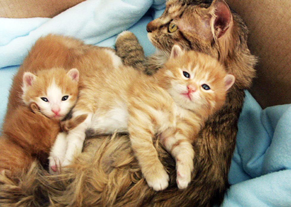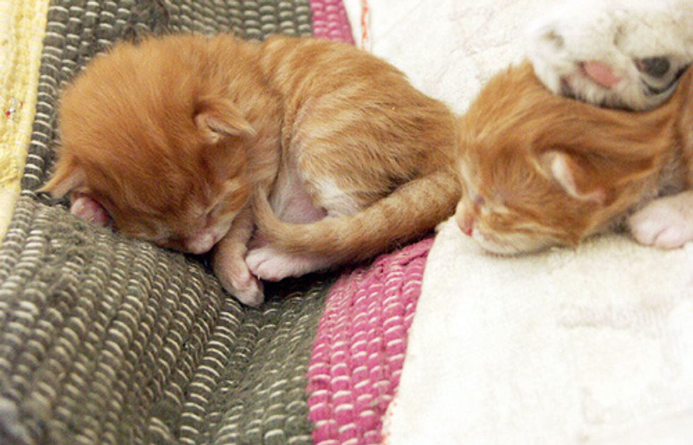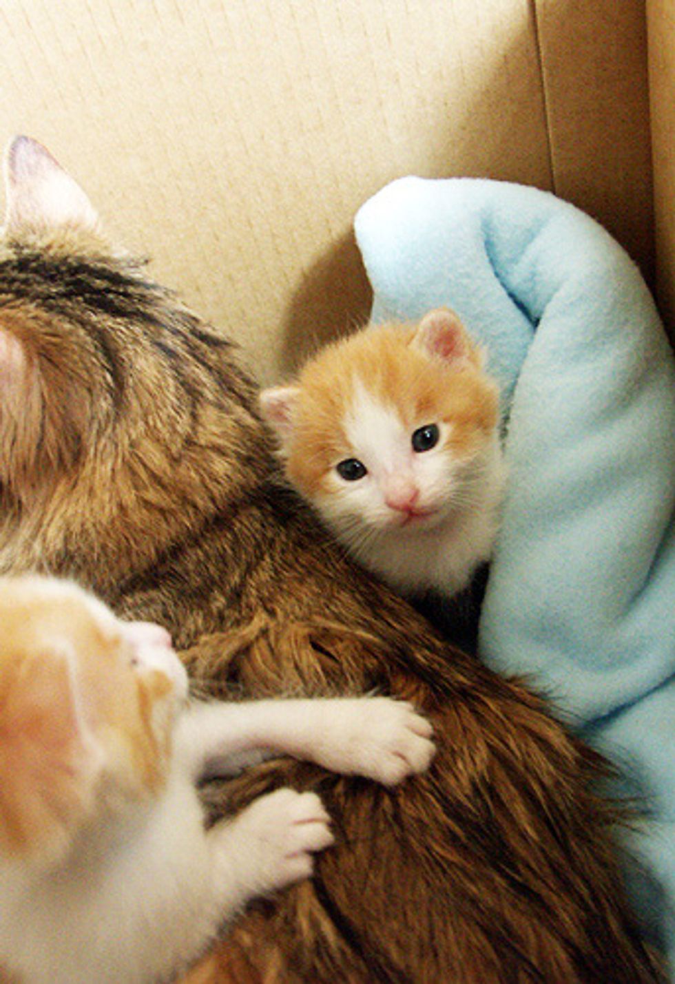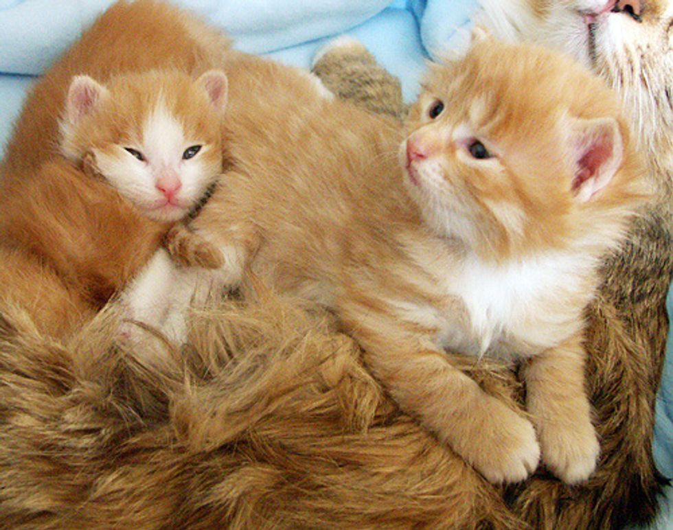 Vera took in an entire kitty family a few years ago where the mama cat just gave birth to a litter of fuzzballs. These squirmy teeny ones couldn't wait to explore around as soon as their eyes were open.