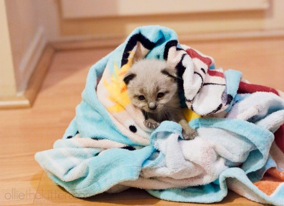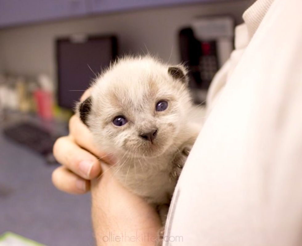 They took Ollie to the vet. "She told us that kitten was a little boy, about 2-3 weeks old."