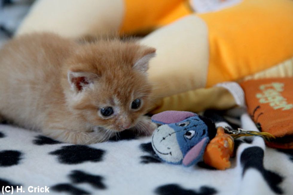 Oliver was bottle fed since he was little. The ginger kitty did not get his share of milk from the cat mother because her milk dried up, but luckily he was adopted by a hairdresser who came to the rescue and brought not only food, but lots of TLC to the little munchkin.