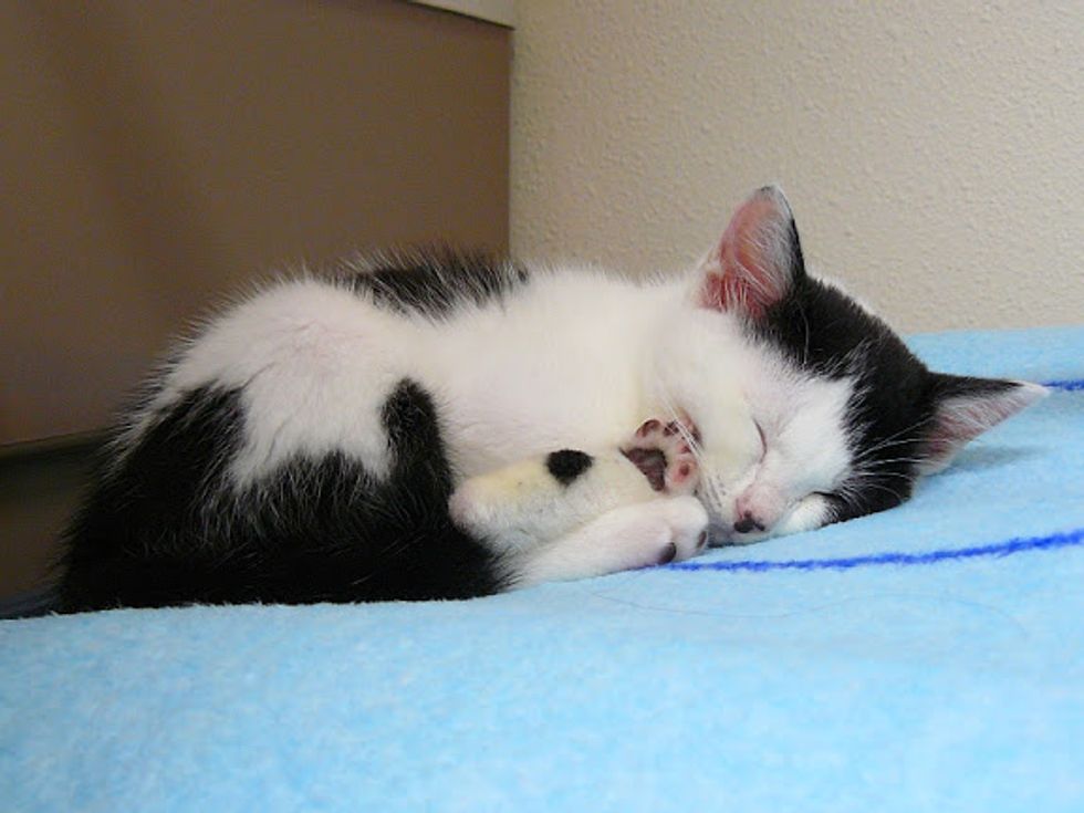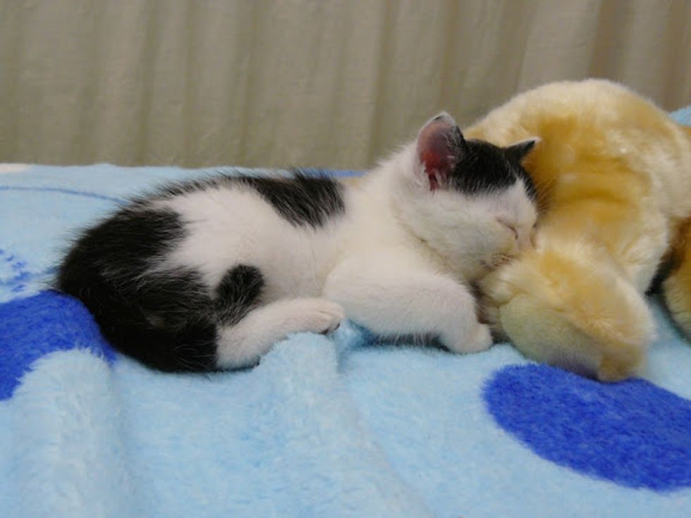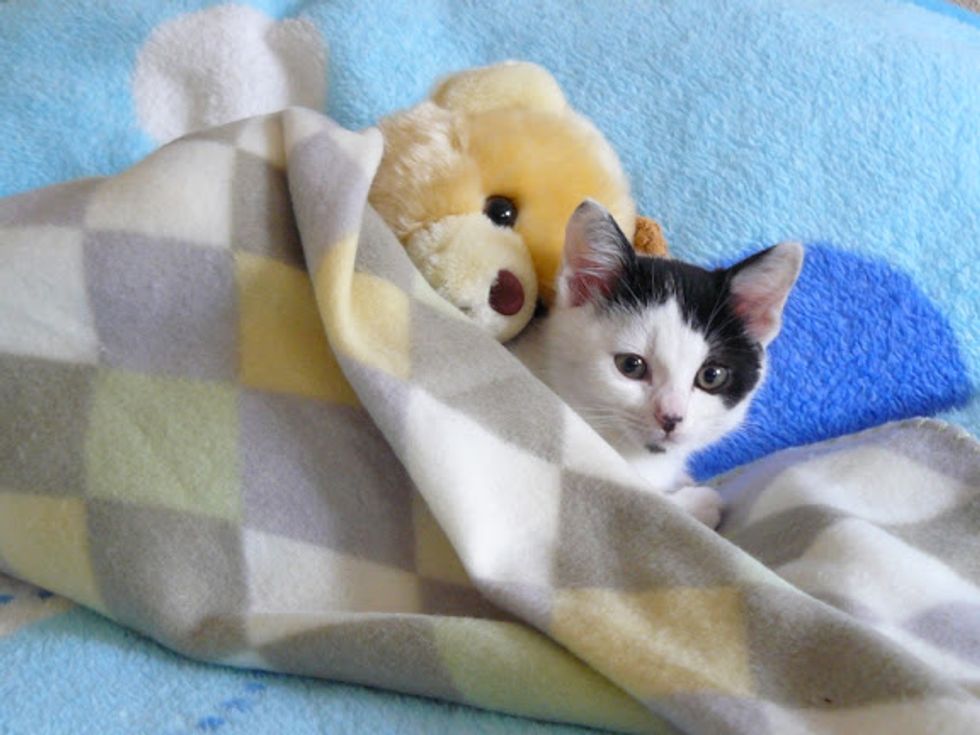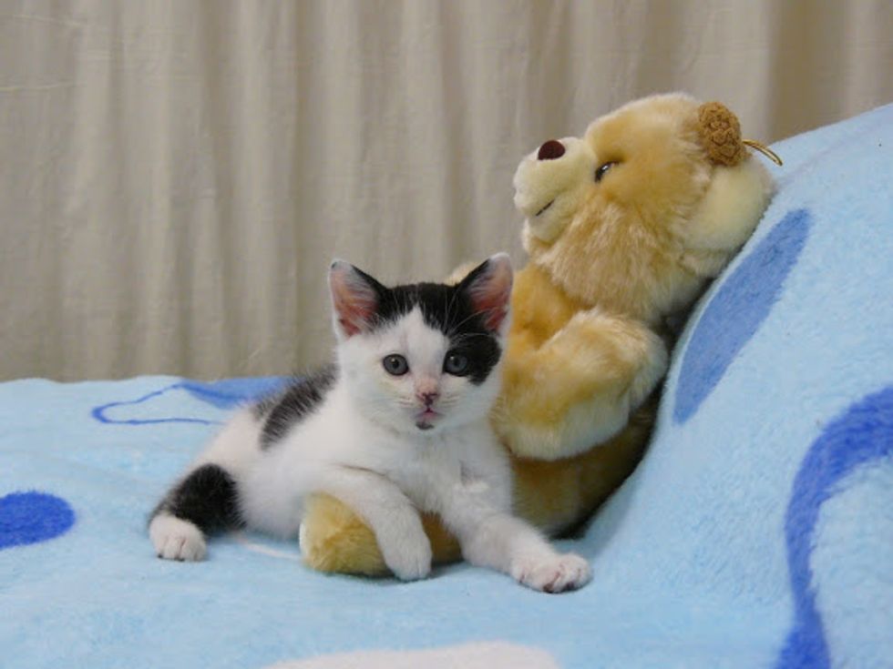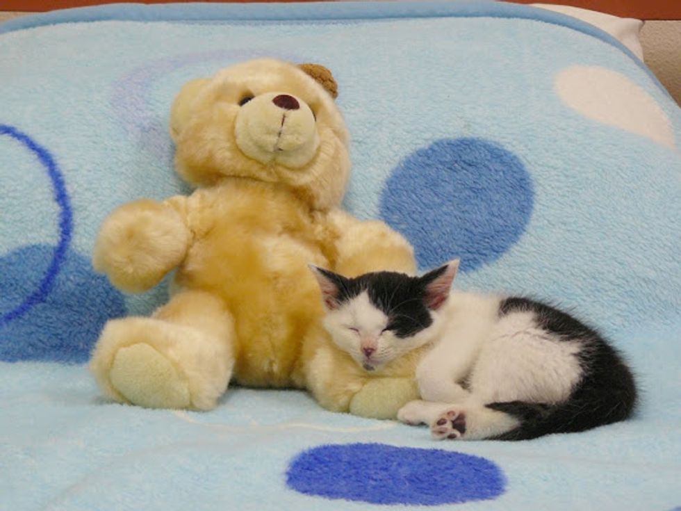 "It is a home with loving people, two older cats and a nice garden. His friend, the teddy bear went with him."