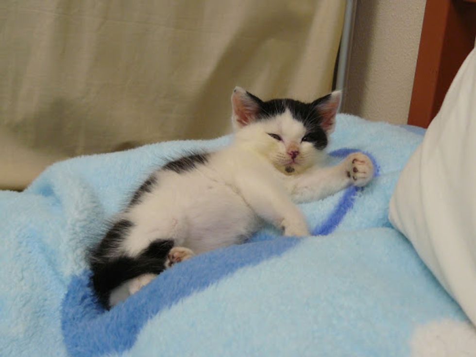 The next day, the little kitten was able to eat by himself. "He even had four little sharp canines, and fortunately for me he understood where the litter was from the very beginning."