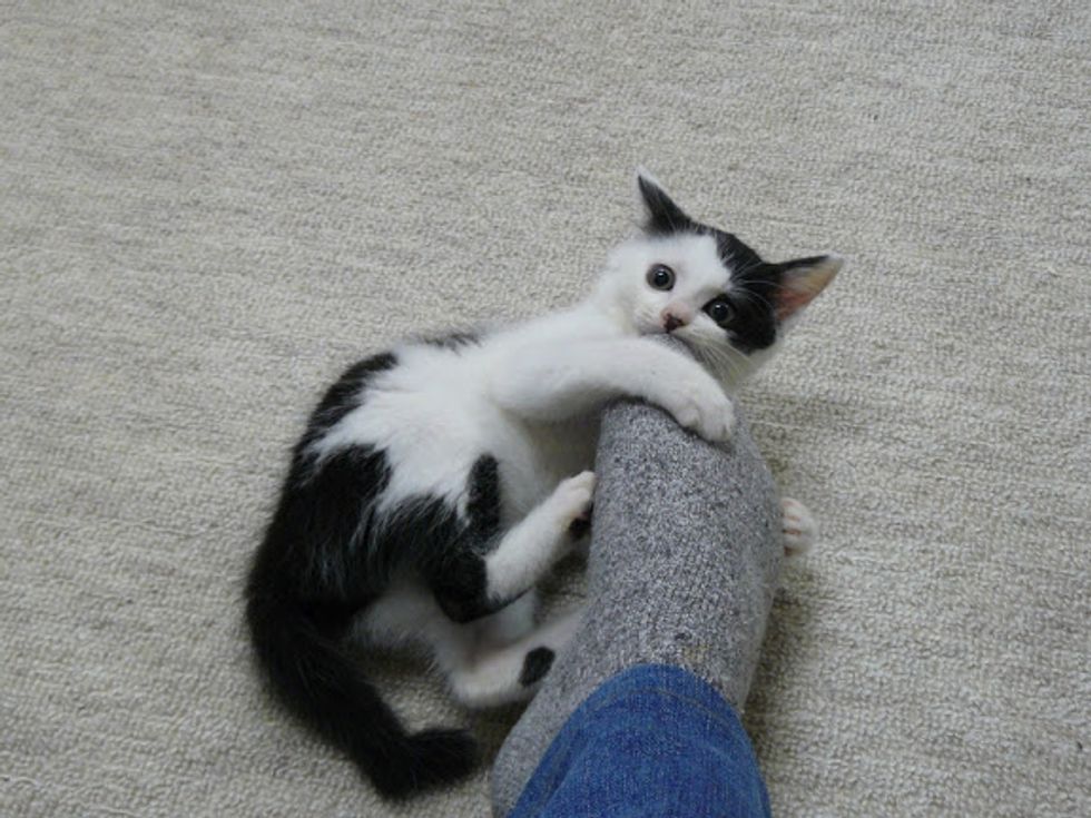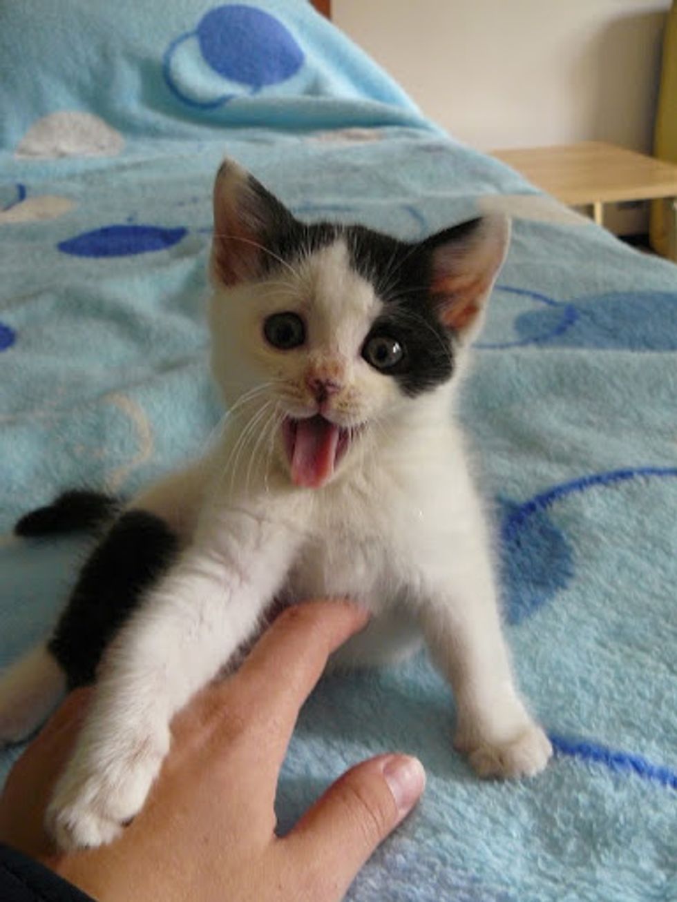 One morning Andreea came across a few kids in the neighborhood who were playing with a kitten. "The kitten was alone and crying for mom, so they took him. For a while we looked for the mom. We found three or four mother cats and we showed them the kitten, but none of them seemed to recognize or want him," said Andreea.
