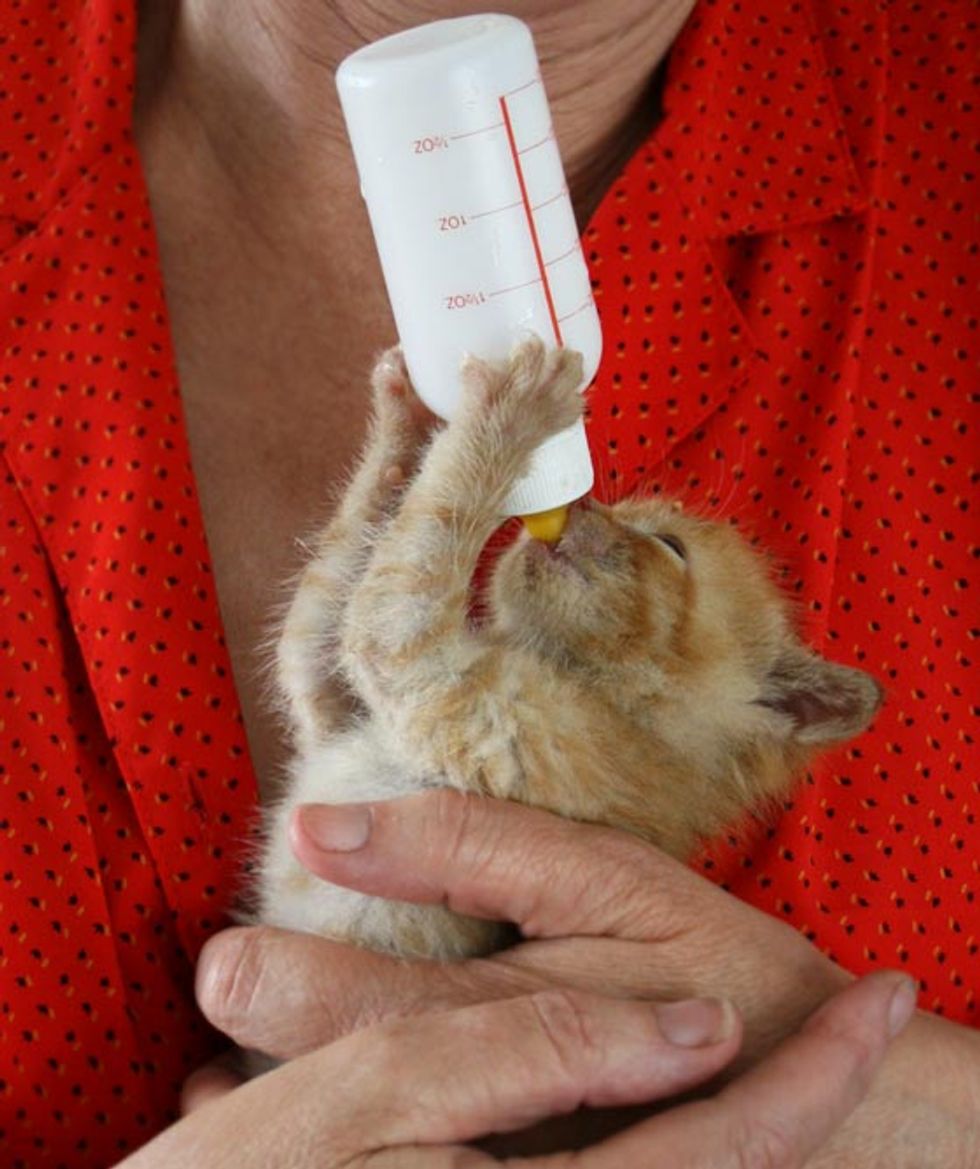 "I am a big kitty now and I can hold my own bottle!" ginger kitty says.