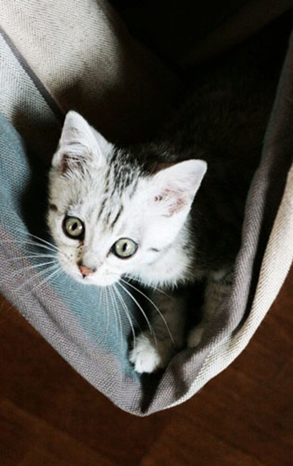 Besides playing chase with mommy, Praline is crazy about bags. Whenever Lucile brings back a crinkling one, in a matter of seconds, you will find Praline sitting in there, claiming it as her little fortress.