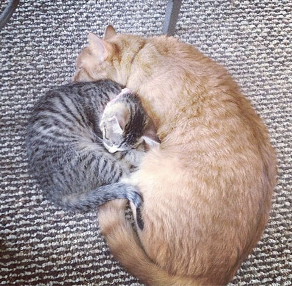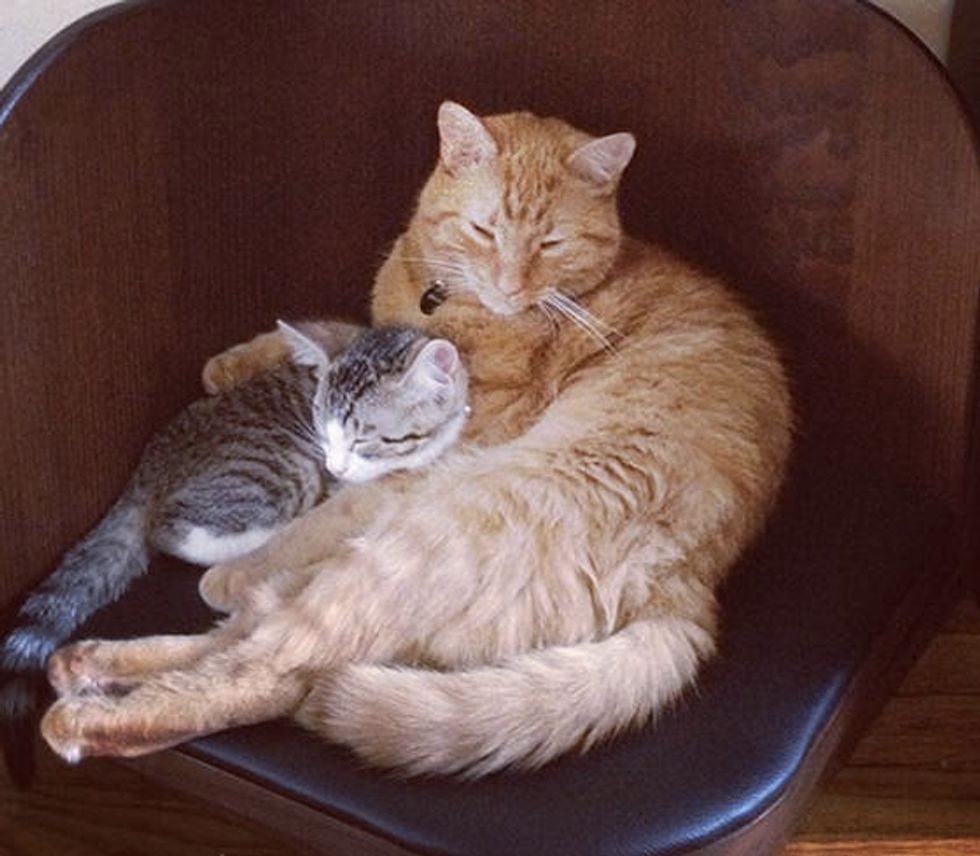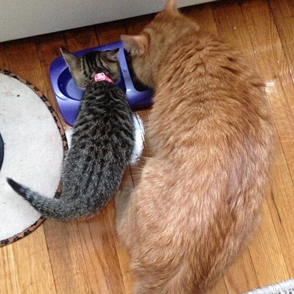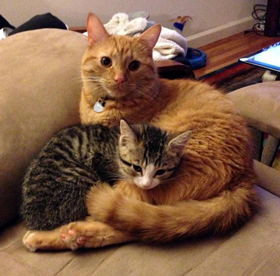 Chazz the ginger took to a little 2 month old kitten who needed some extra TLC.