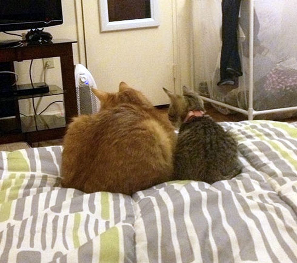 When Chazz met Samus, it was as if he knew that the little kitten could use some extra comfort and love. The two have become inseparable ever since.