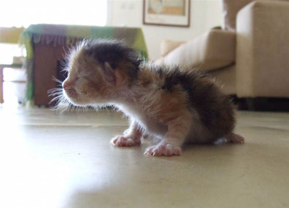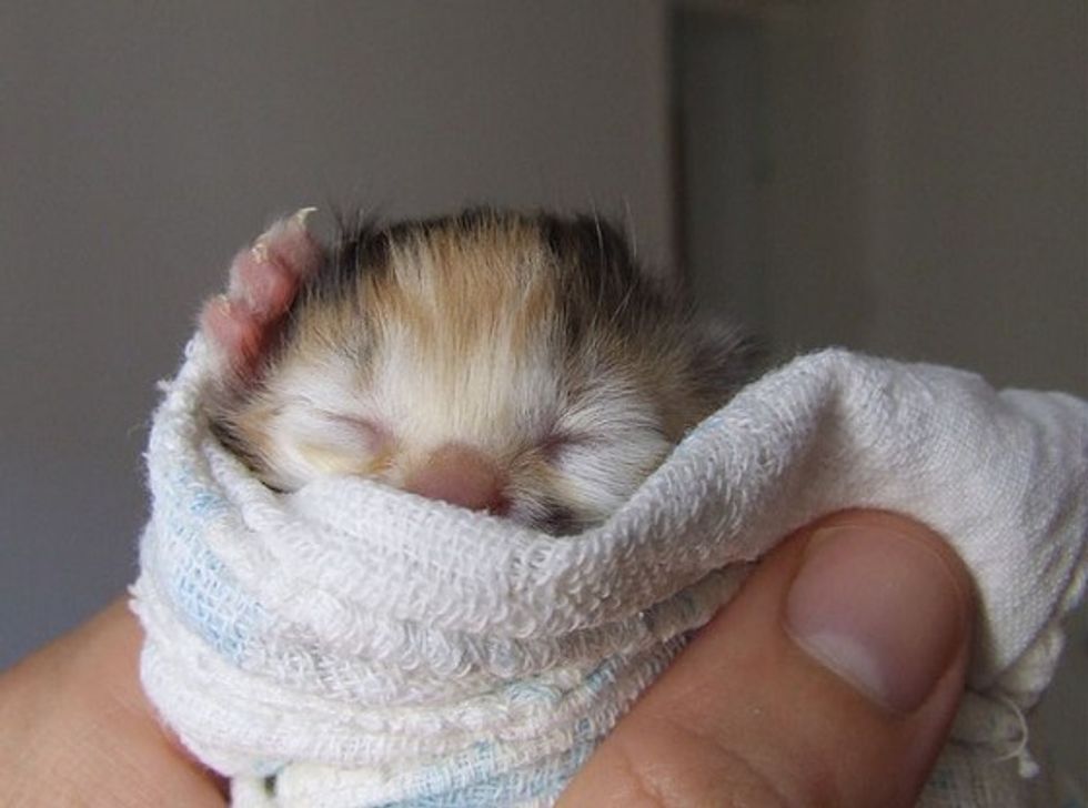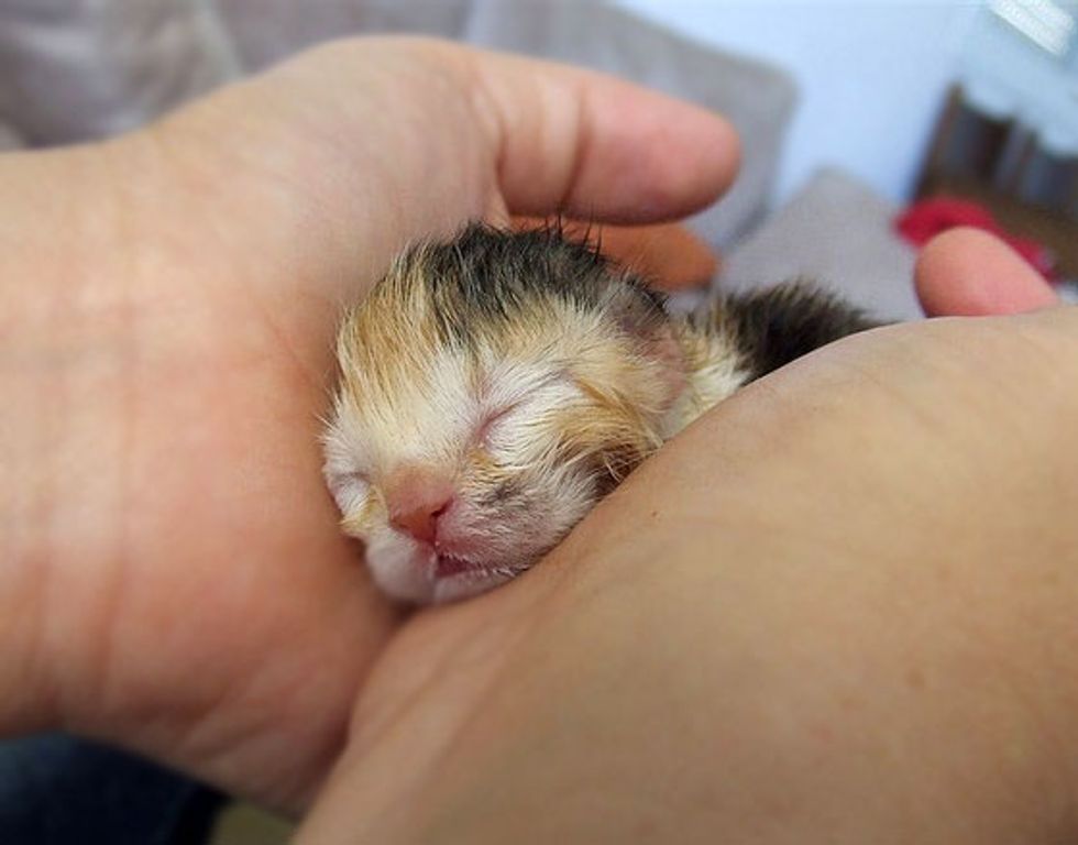 Mimi the calico was found on the sidewalk just hours after she was born.