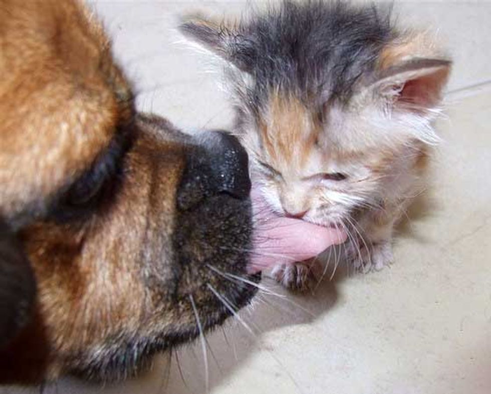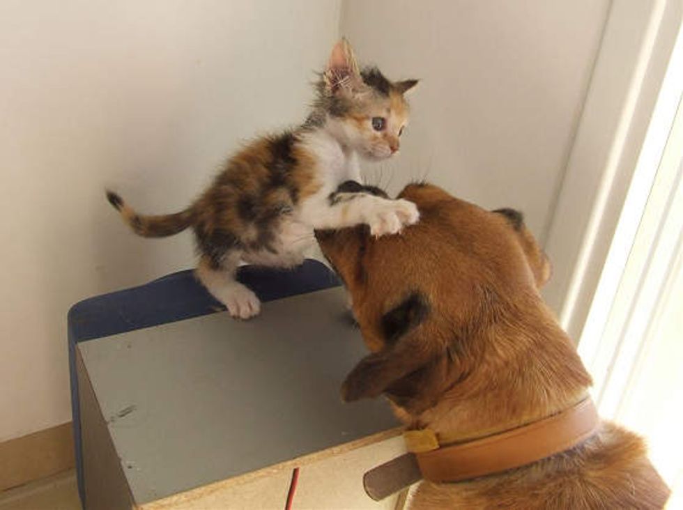 Mimi the calico is a miracle kitty who was found on the sidewalk just hours after she was born. She was so tiny but the little one wouldn't give up living. "Her eyes were still closed and her umbilical cord was attached," said Ilan P. who rescued Mimi and nursed her back to health. His dog Peki also gave him a big helping paw.